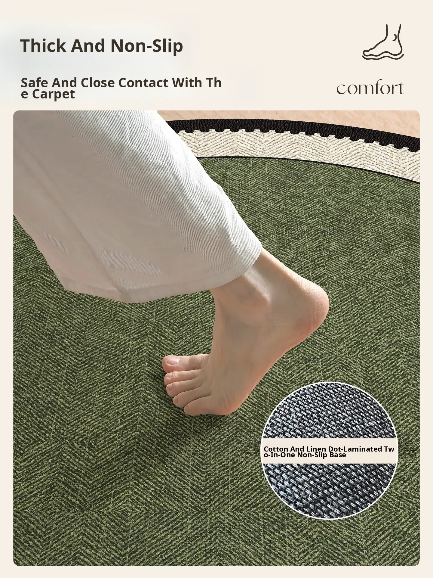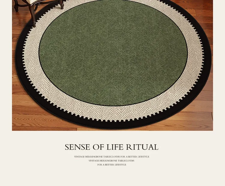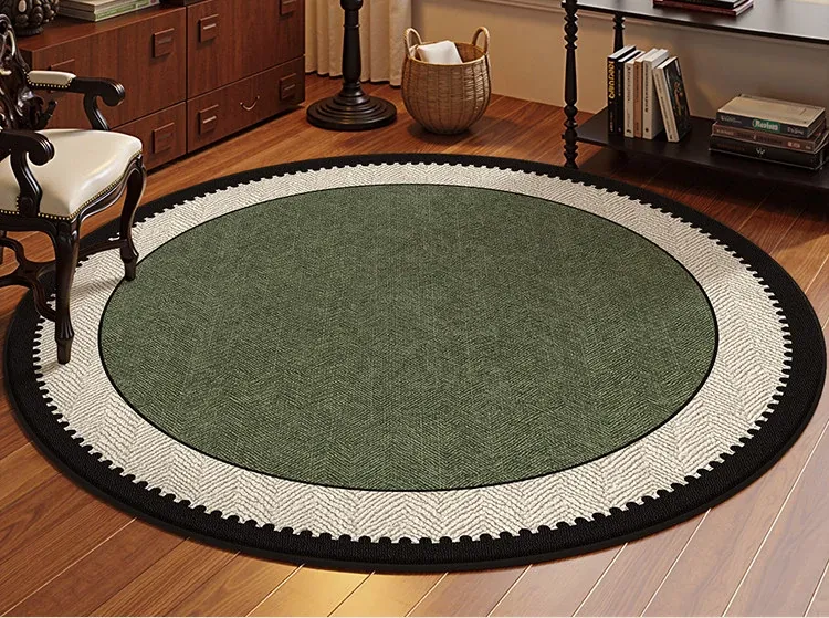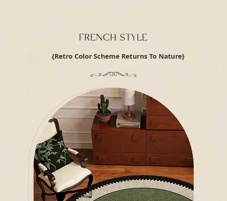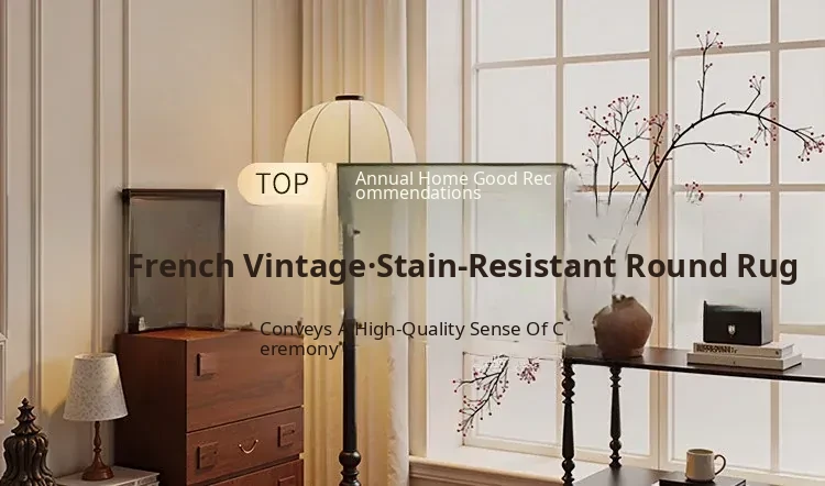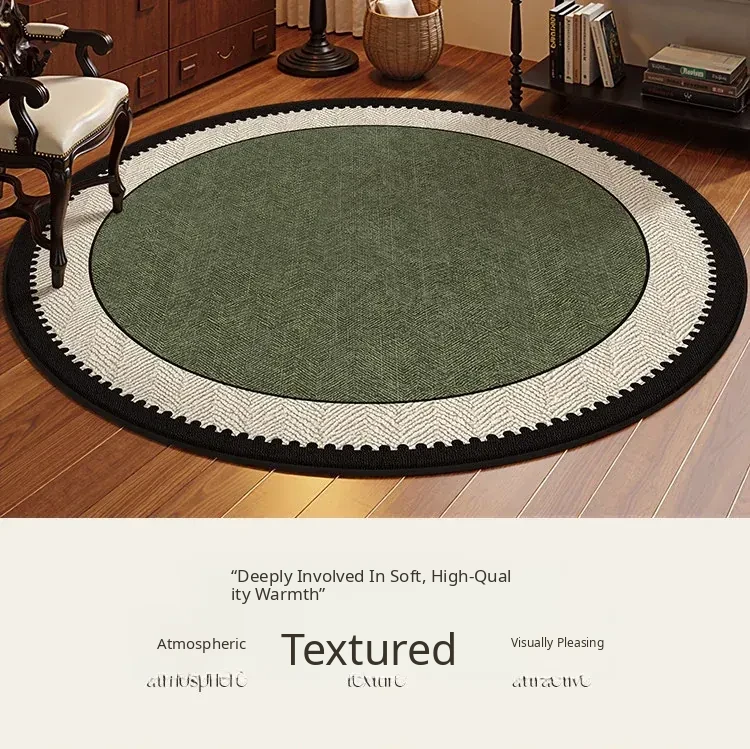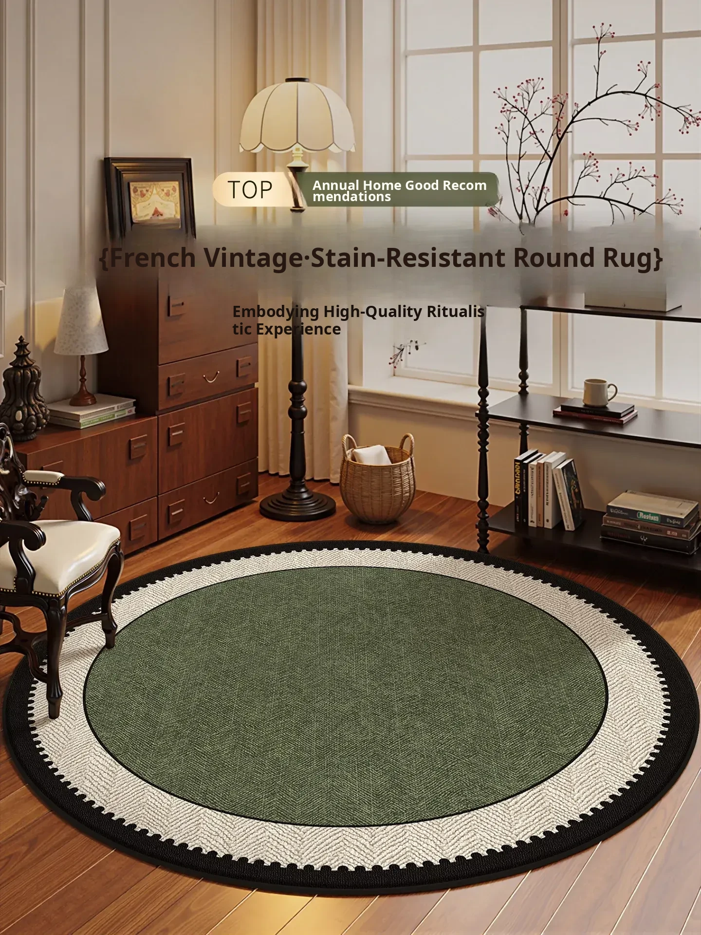 French Round Carpet - Vintage Style Living Room Rug with Retro Computer Chair Cushion, Elegant Waterproof and Wipeable Mat for Makeup and Office Use