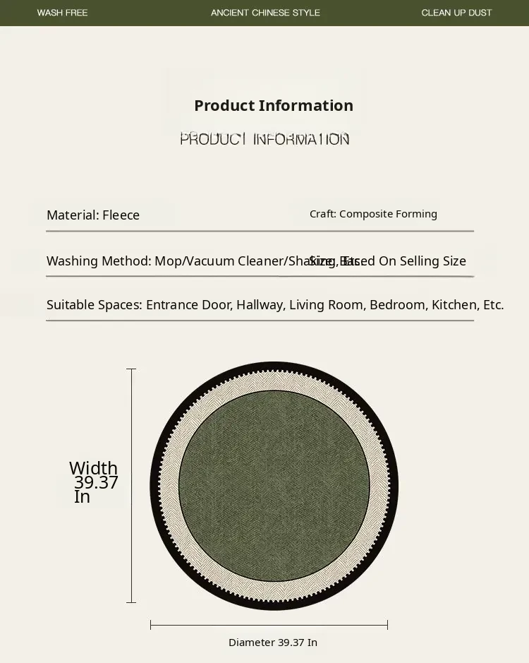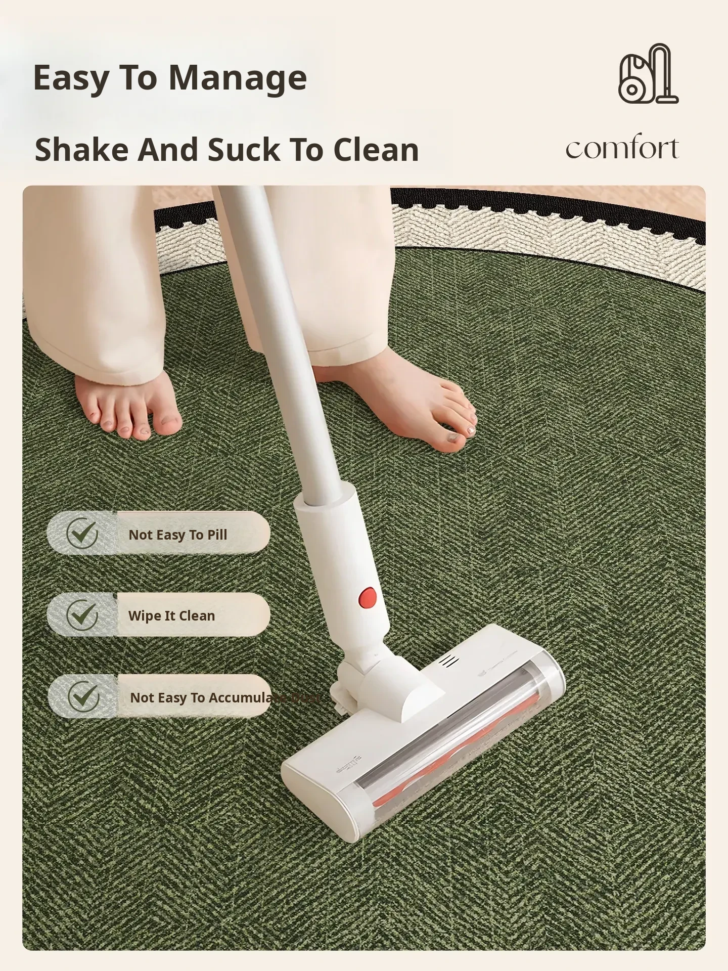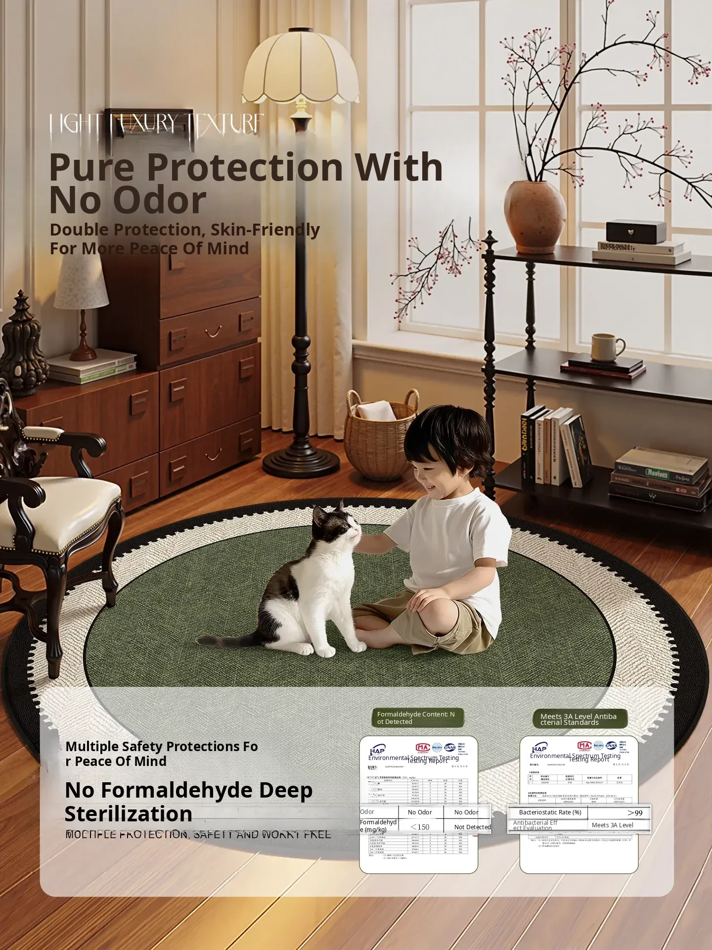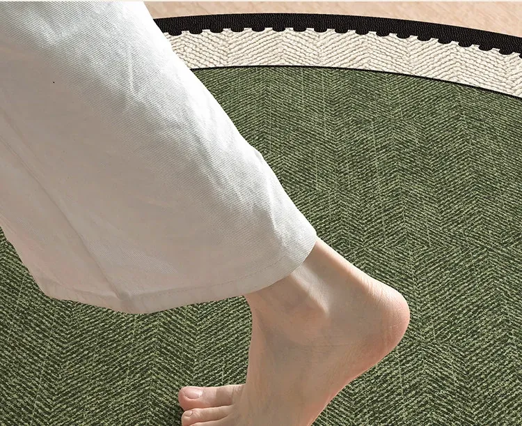 French Round Carpet - Vintage Style Living Room Rug with Retro Computer Chair Cushion, Elegant Waterproof and Wipeable Mat for Makeup and Office Use