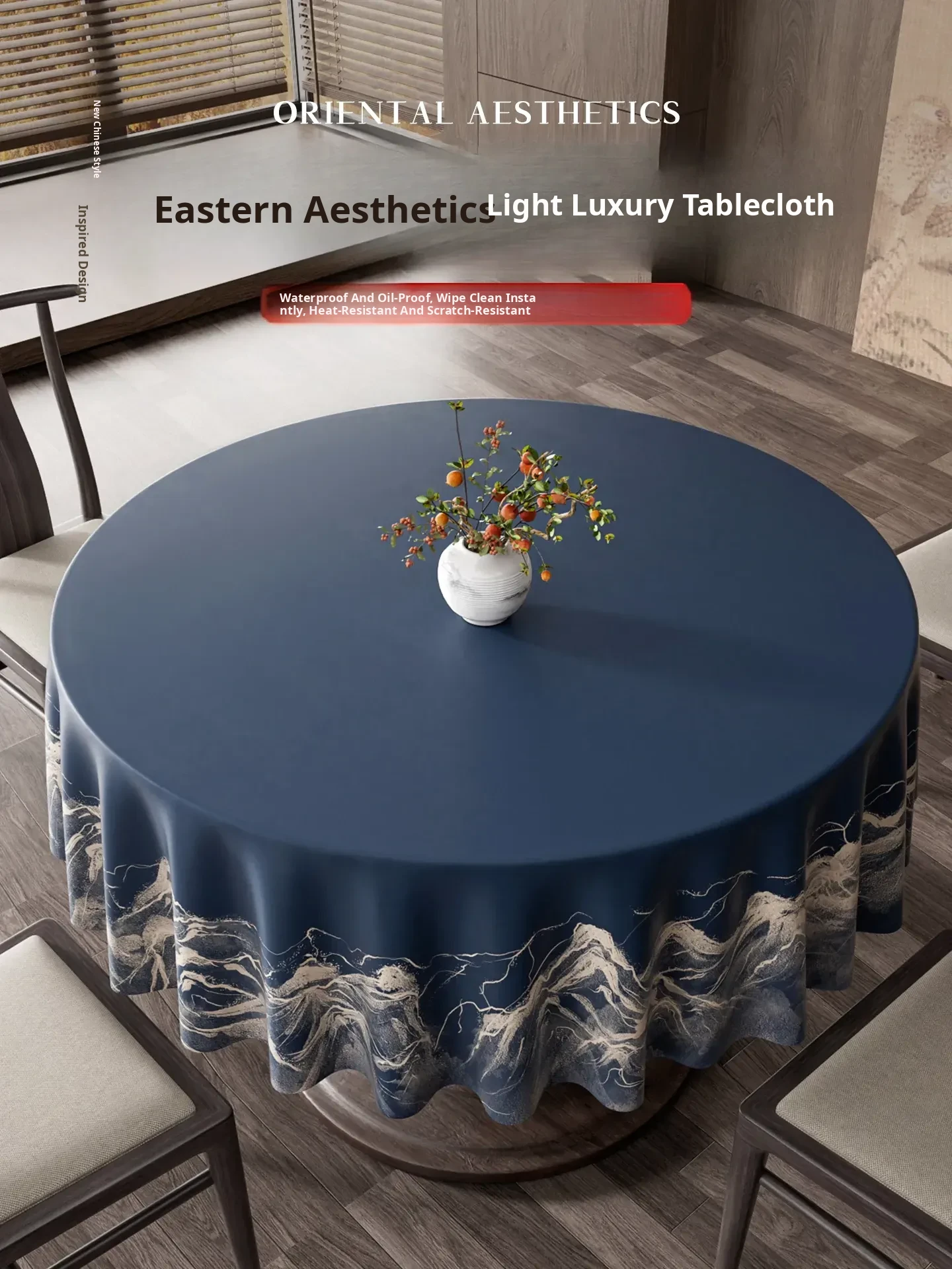 Luxury Waterproof and Oil-Resistant Thickened Round Tablecloth for Hotel Dining – Elegant New Chinese Style, Easy Care, Perfect for Upscale Restaurants