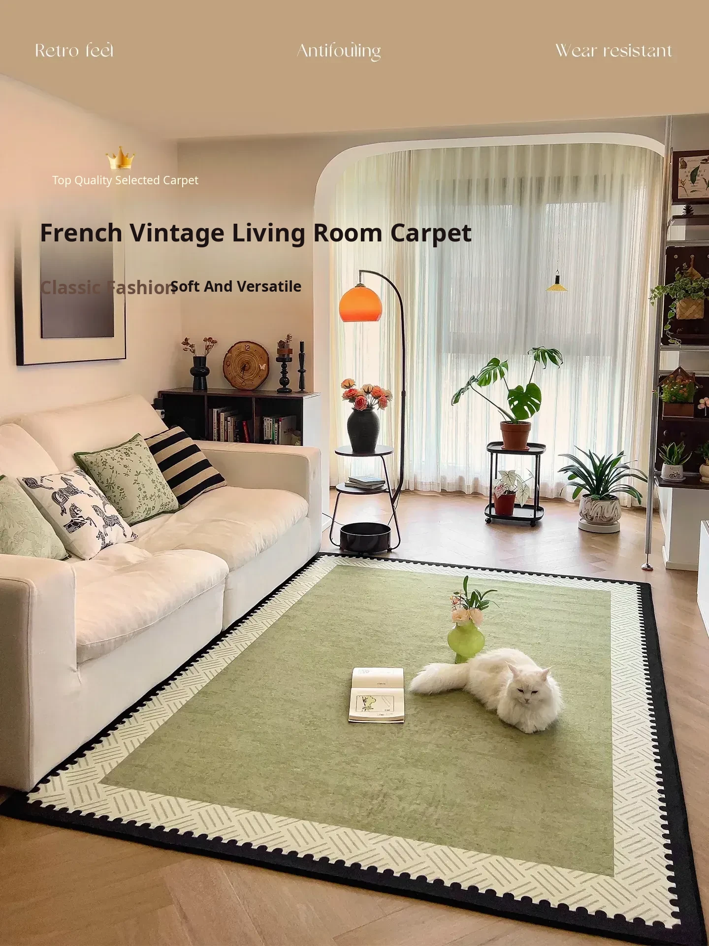 2025 New French Style Luxury Living Room Carpet - Non-Slip, Stain-Resistant, Fully Covered, Absorbent, Easy-Clean Bedroom Mat for Home Use