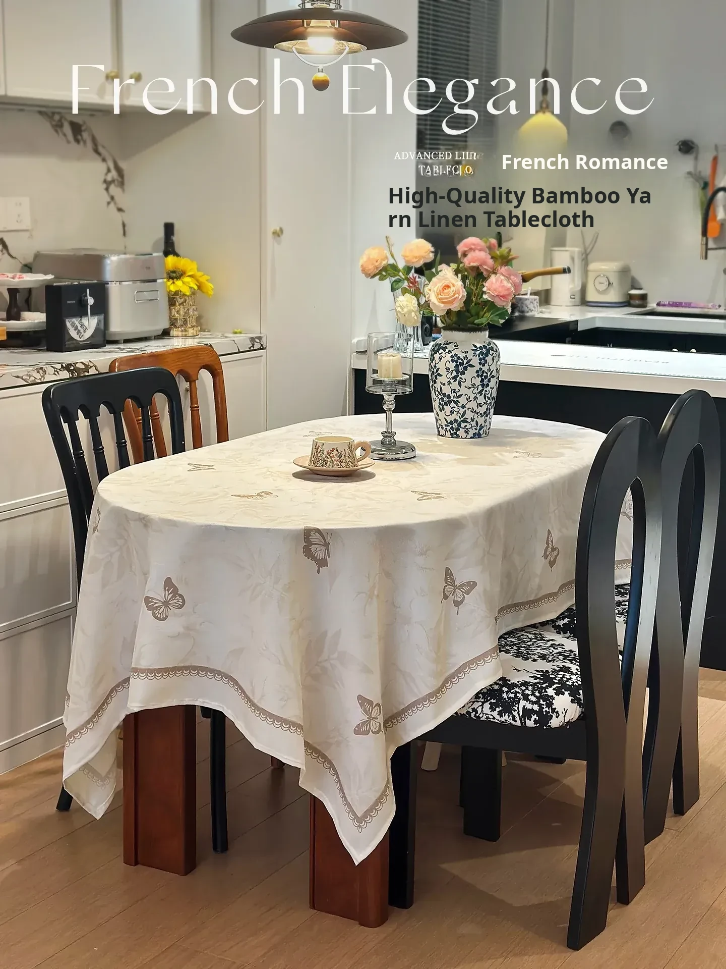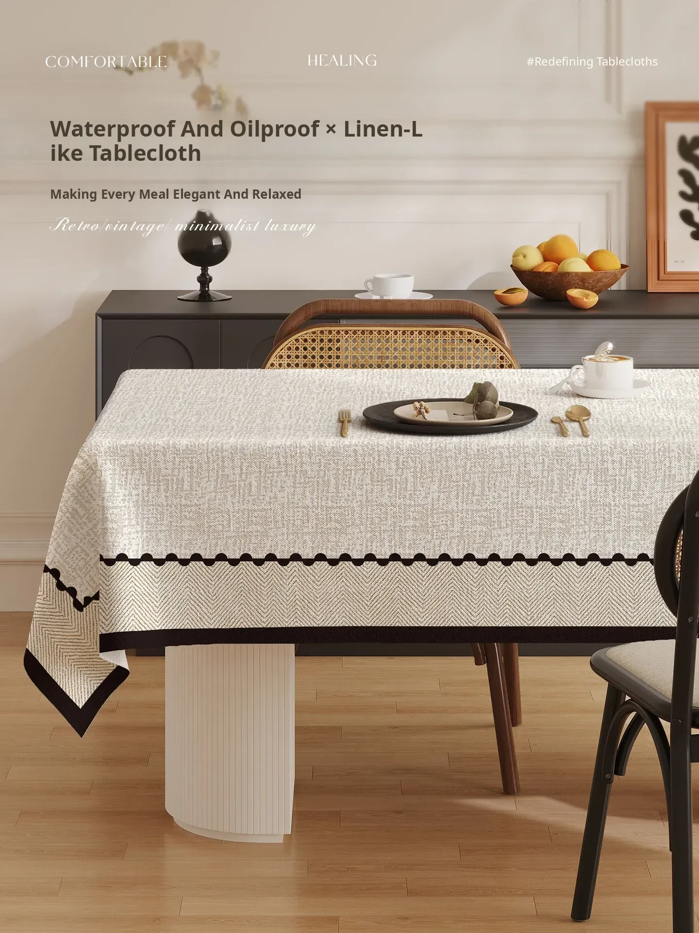 French Vintage Chic High-End Feel Linen-Style Tablecloth - Modern Minimalist, Waterproof, Oil-Resistant, Easy-Care Table Cover for Effortless Elegance