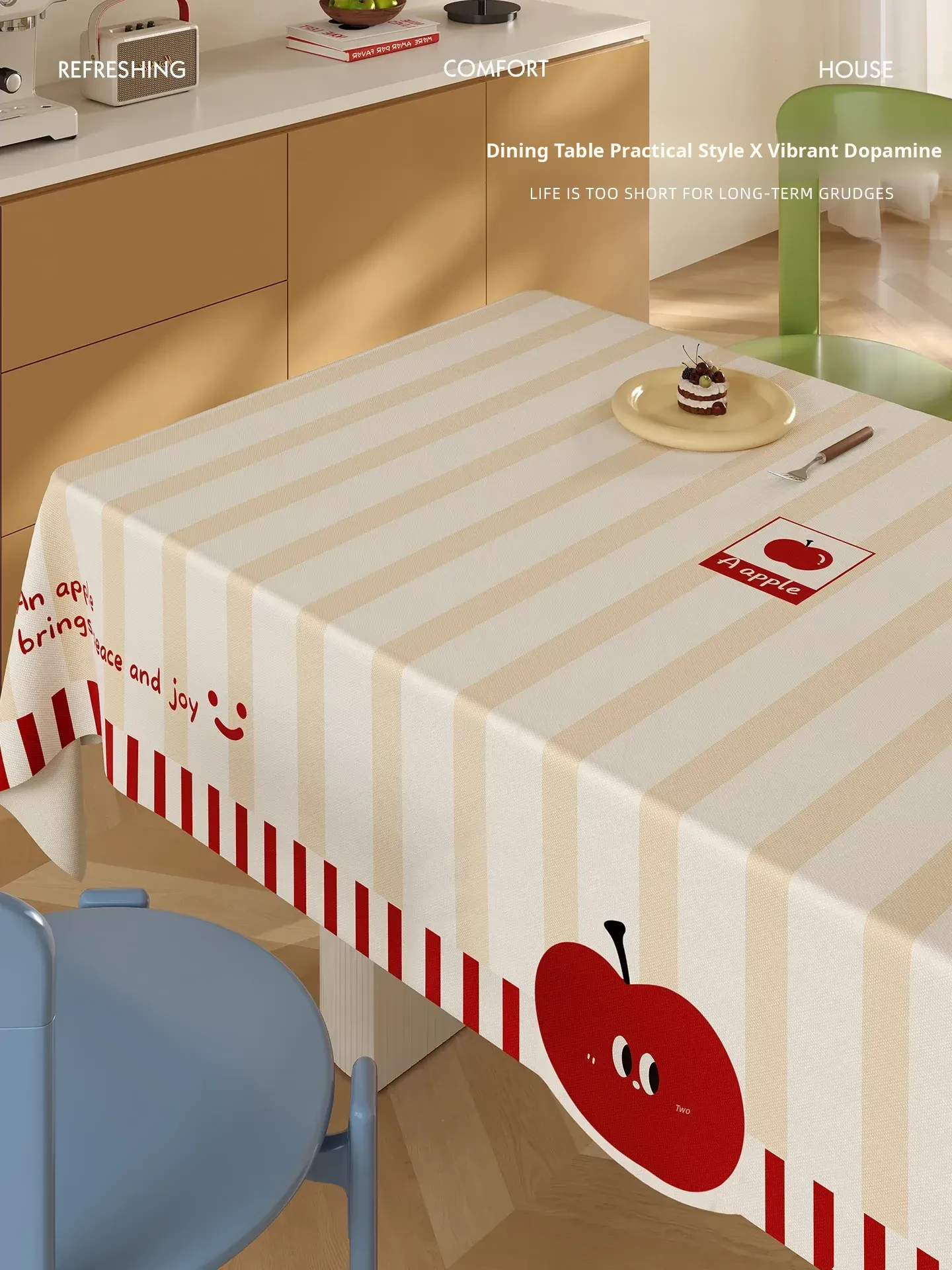 Cartoon Dopamine Drop Waterproof, Oil-Proof, and Stain-Resistant Oxford Tablecloth - No Wash, Perfect for Dining Tables and Coffee Tables, Ultimate Protection for Your Surfaces!