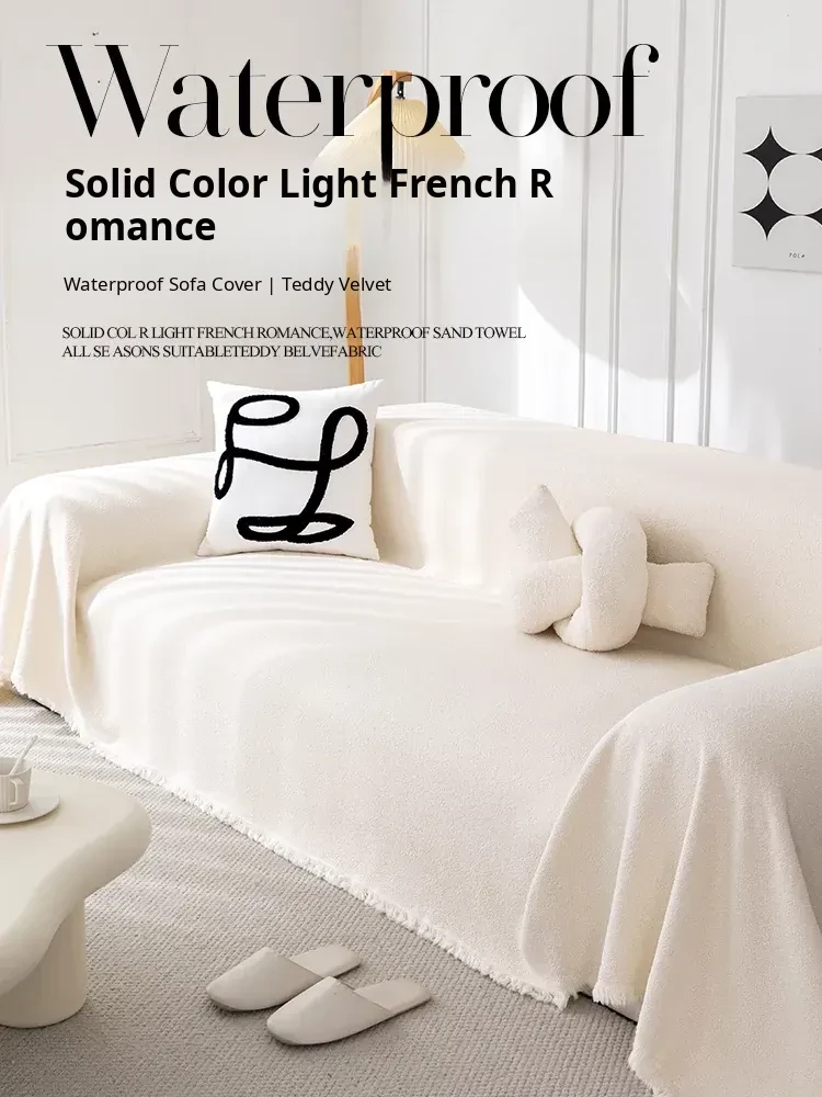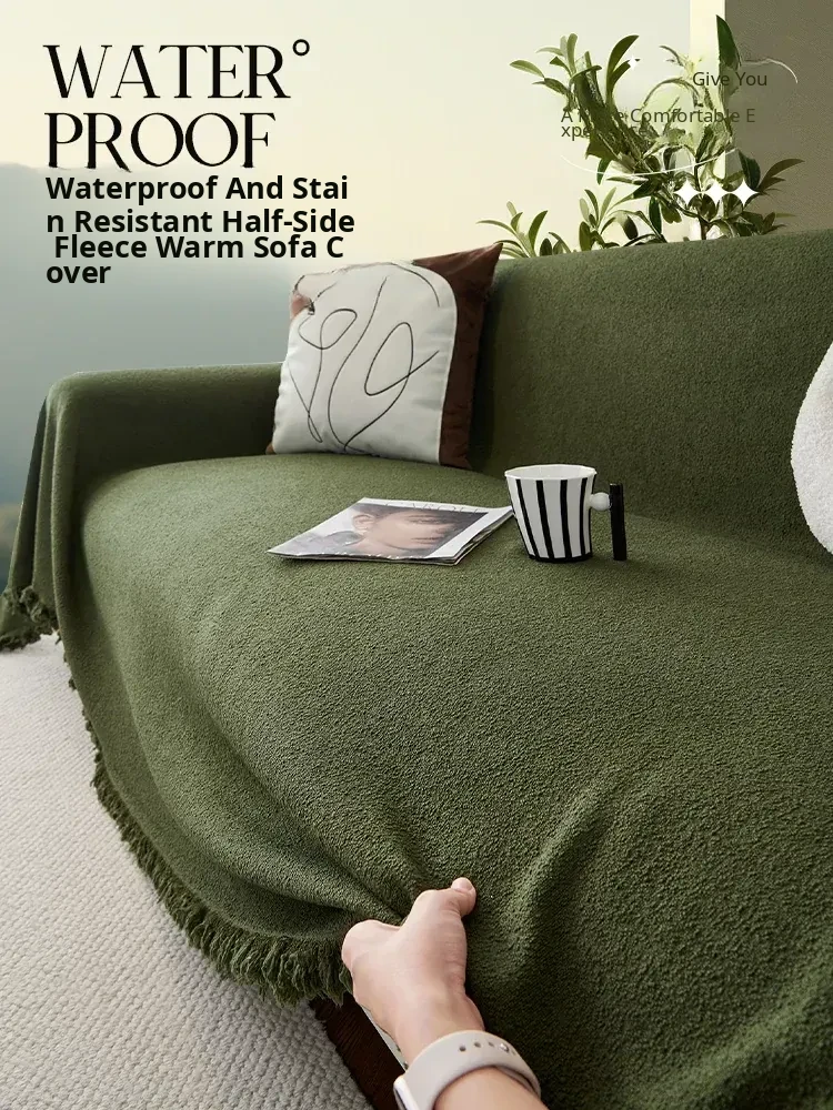 Waterproof Teddy Velvet Sofa Cover - Universal for All Seasons, Anti-Cat Scratch, Non-Slip Slipcover with Dustproof Cushion Protector
