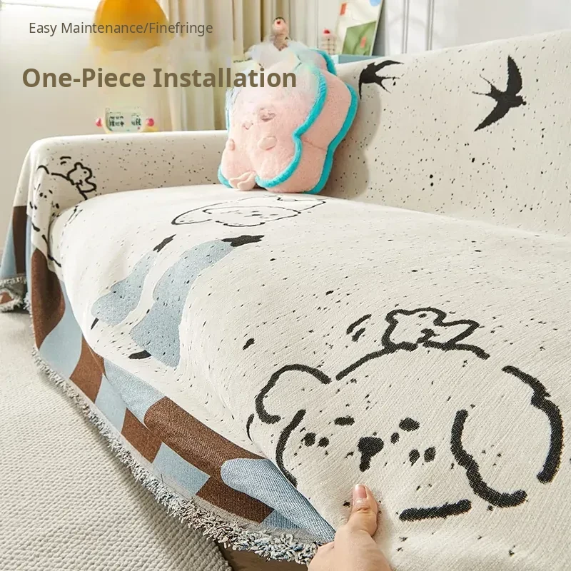 Charming Cartoon Chenille Sofa Cover - 2025 New Arrival, Universal for All Seasons, Cat Scratch Resistant - Perfect for Adding Style and Protection to Your Living Room!