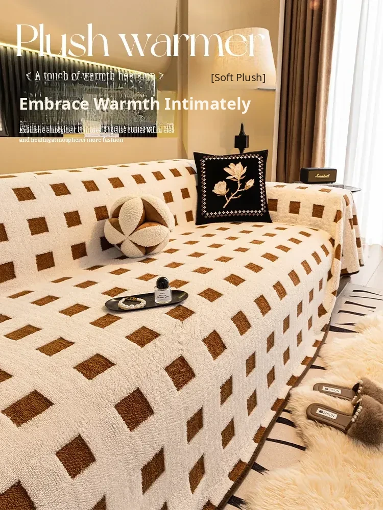 Dopamine Plush Sofa Cover - Full-Sized Thickened Warm Throw Blanket for Sofa, Cozy Winter 2025 Edition - Perfect for Backrest Comfort and Style!
