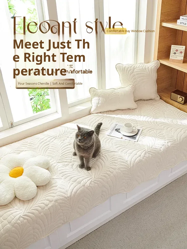 2024 New French Vintage Irregular All-Season Bay Window Cushion - Creamy Chic Luxury Style Soft Seat Pad for Elegant Interiors