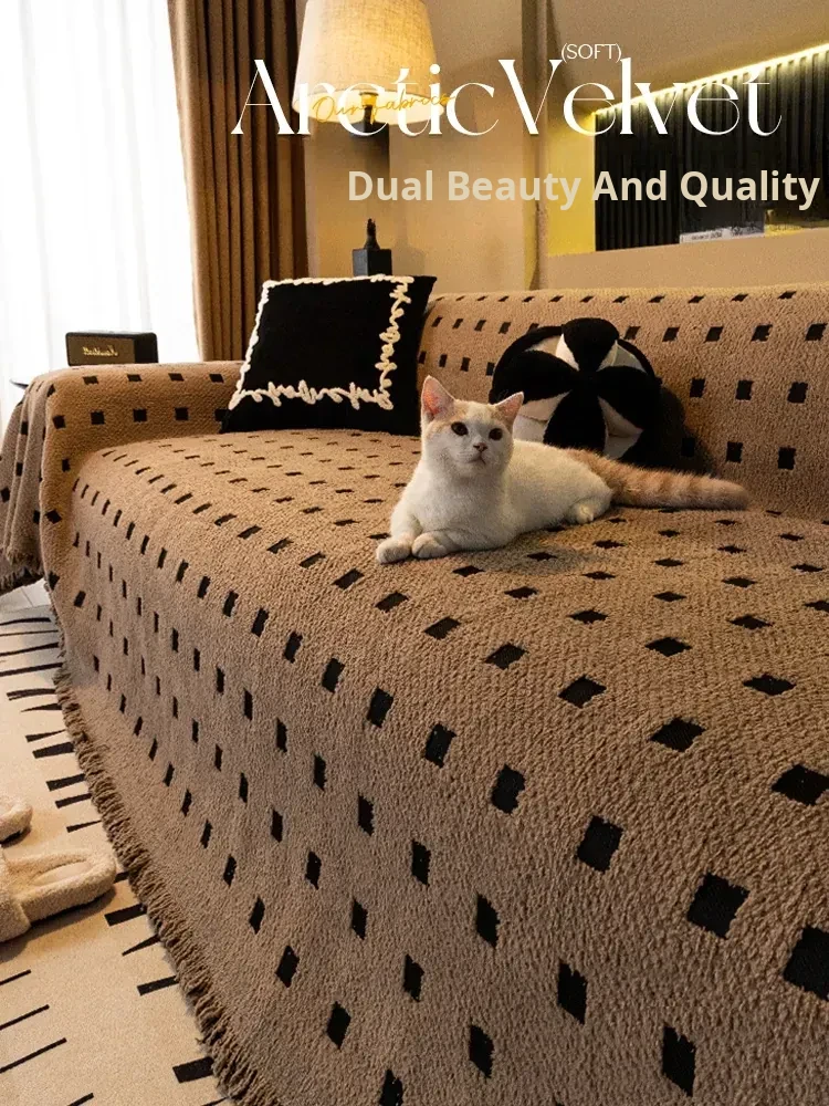 2025 Winter New Vintage Thick Waterproof Plush Sofa Cover Blanket - Cat Scratch Resistant Sofa Protector for Cozy Living Spaces