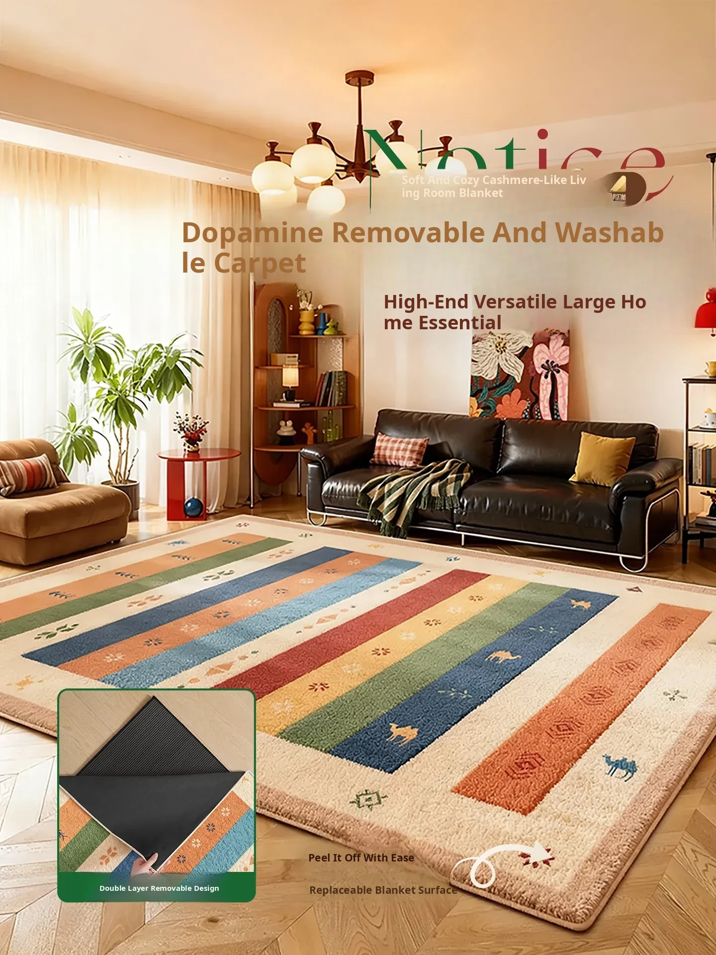 Luxurious Double-Layer Washable Dopamine Carpet for Living Room & Bedroom - Non-Slip, Easy to Clean Sofa Mat, Perfect for Home Use