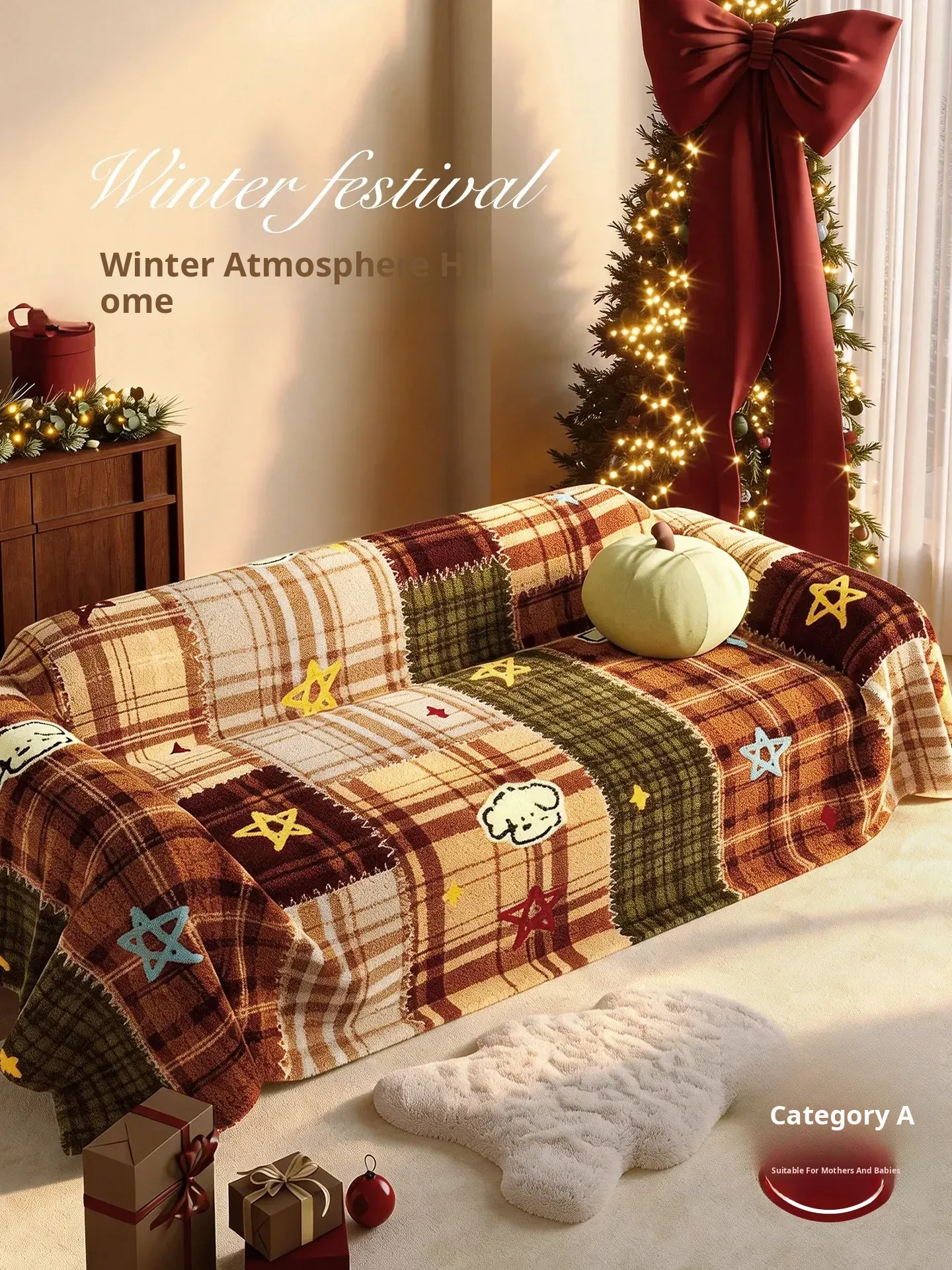 Cozy Christmas Vibes Plush Sofa Cover - 2025 Winter Collection Cat Scratch-Resistant Sofa Throw Blanket