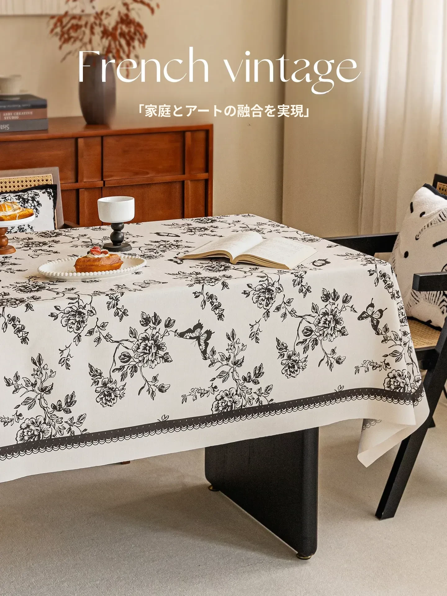 2026年新作!フレンチヴィンテージ風の高級感あふれるテーブルクロス - 撥水・撥油加工でお手入れ簡単!洗練されたデザインで、あなたのリビングを一層引き立てます。