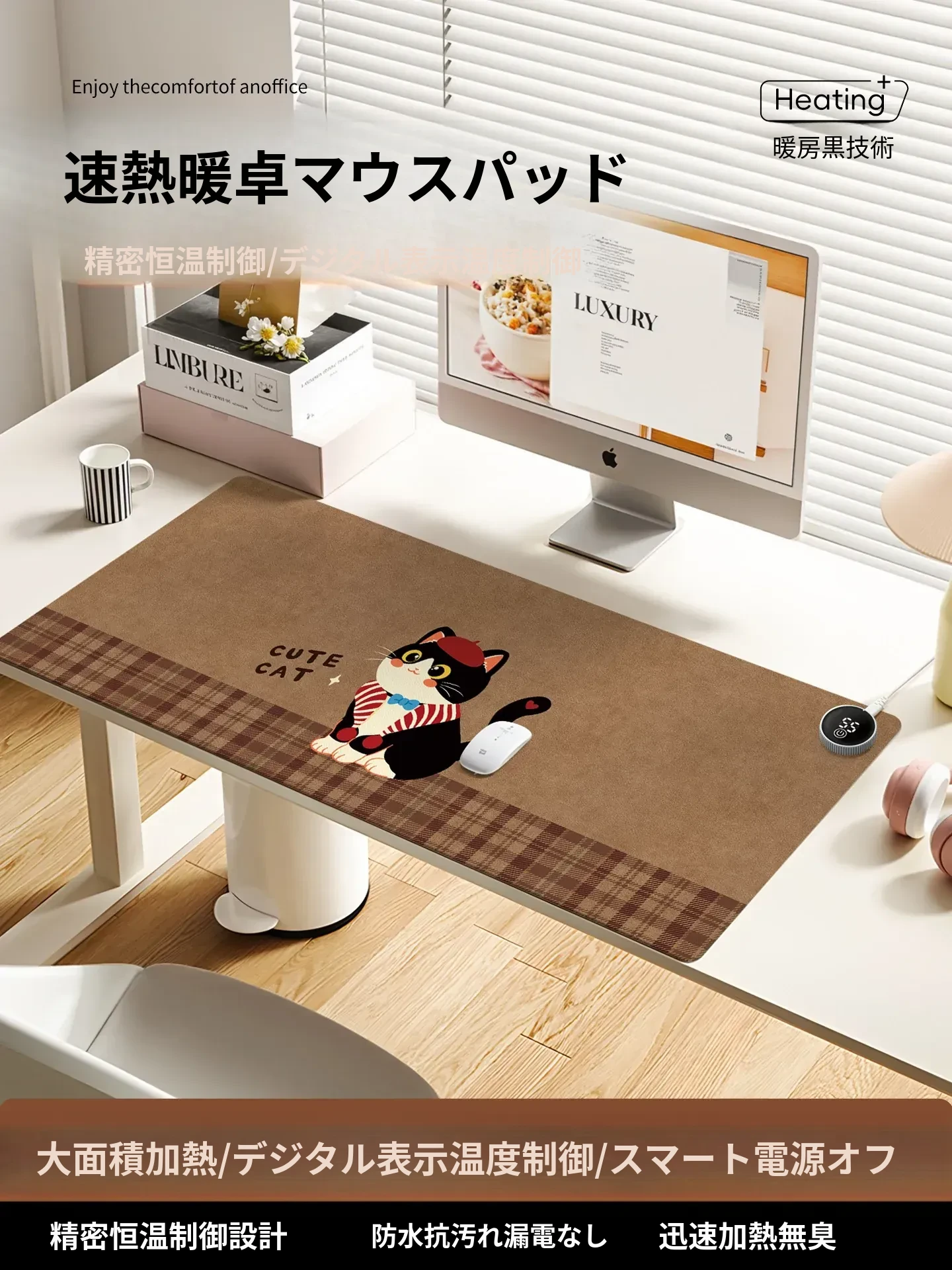 加熱マウスパッド・デスクマット|超大サイズでオフィスや学生に最適!冷えた手を温める防水マット、快適なデスク環境を実現!