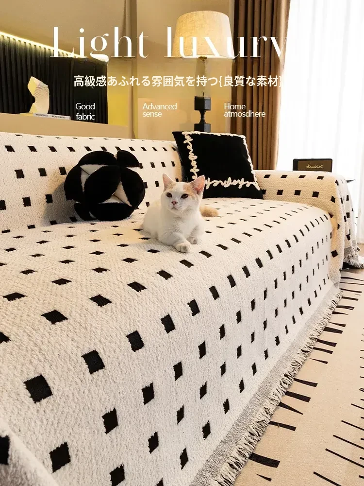 2025年新作!高級感あふれる軽奢ソファカバー - 四季に対応、滑り止め付き、猫の爪から守る!おしゃれで機能的なソファブランケットで、リビングを華やかに演出します。
