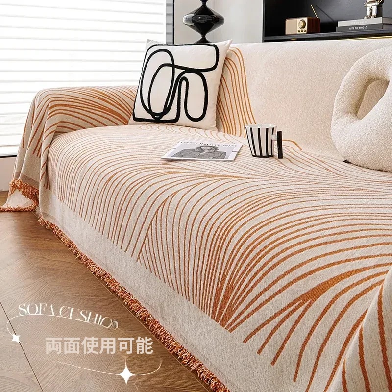 北欧風の高級感あふれるファブリックソファカバー|万能カバーで季節を問わず使用可能|猫の爪から守り、滑り止め機能付き|おしゃれで実用的なソファブランケット