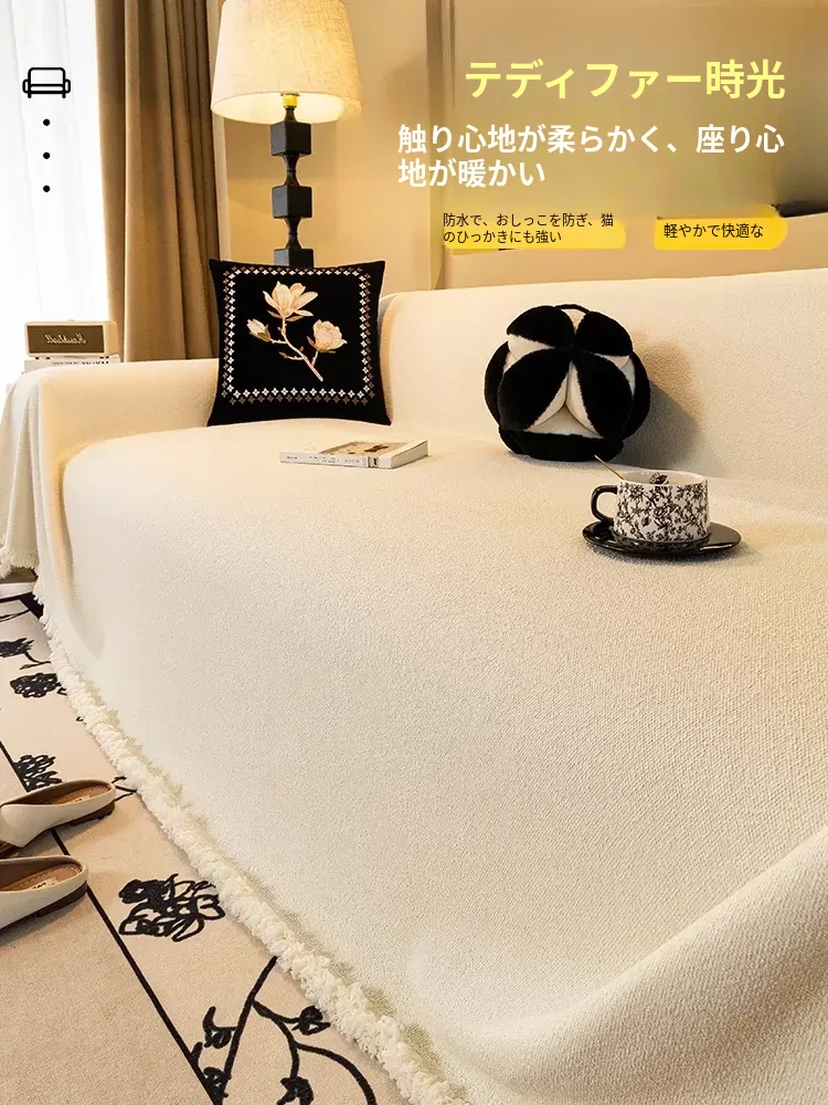 2025年新作!防水テディファーソファカバー - オールシーズン対応、滑り止め付きの万能ソファマットで、あなたのソファをスタイリッシュに保護!