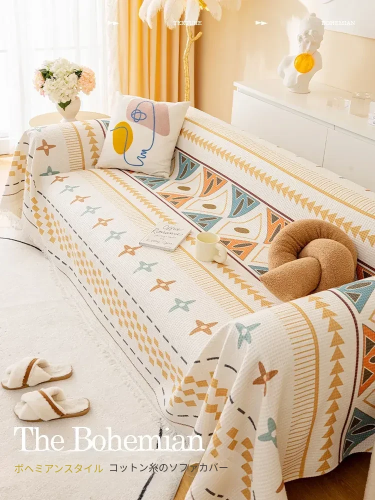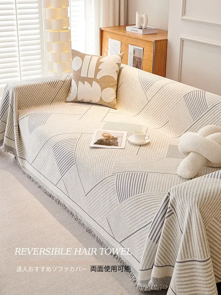 北欧風の高級感あふれるファブリックソファカバー|万能カバーで季節を問わず使用可能|猫の爪から守り、滑り止め機能付き|おしゃれで実用的なソファブランケット