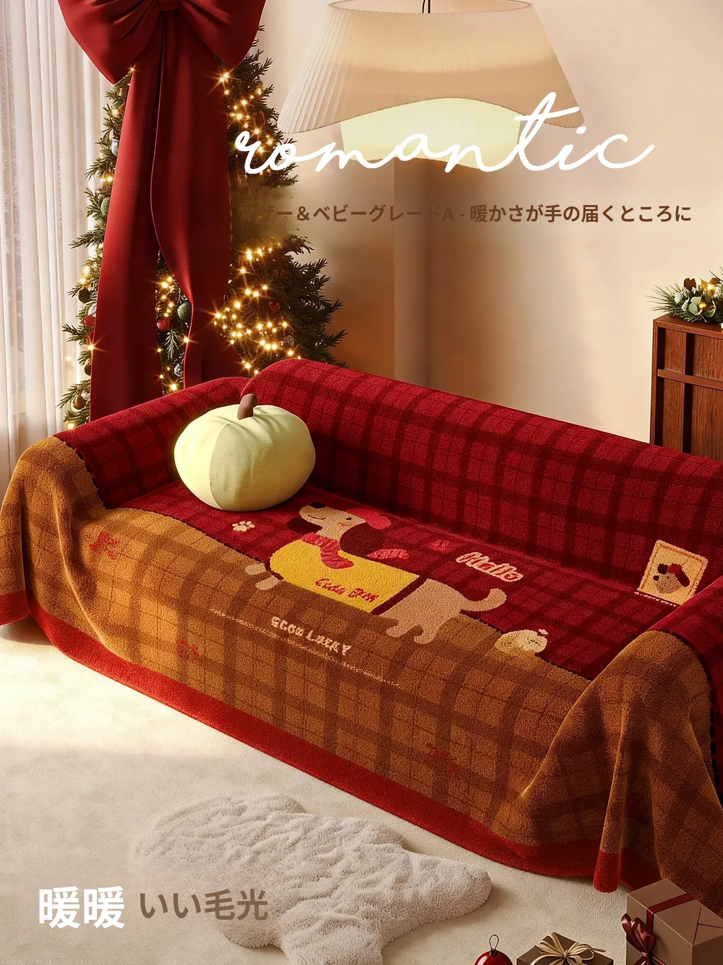 クリスマス・新年の雰囲気を楽しむ!2025年冬の新作、猫の爪から守るふわふわソファカバー。全包タイプで、お部屋を一気に華やかに演出します。