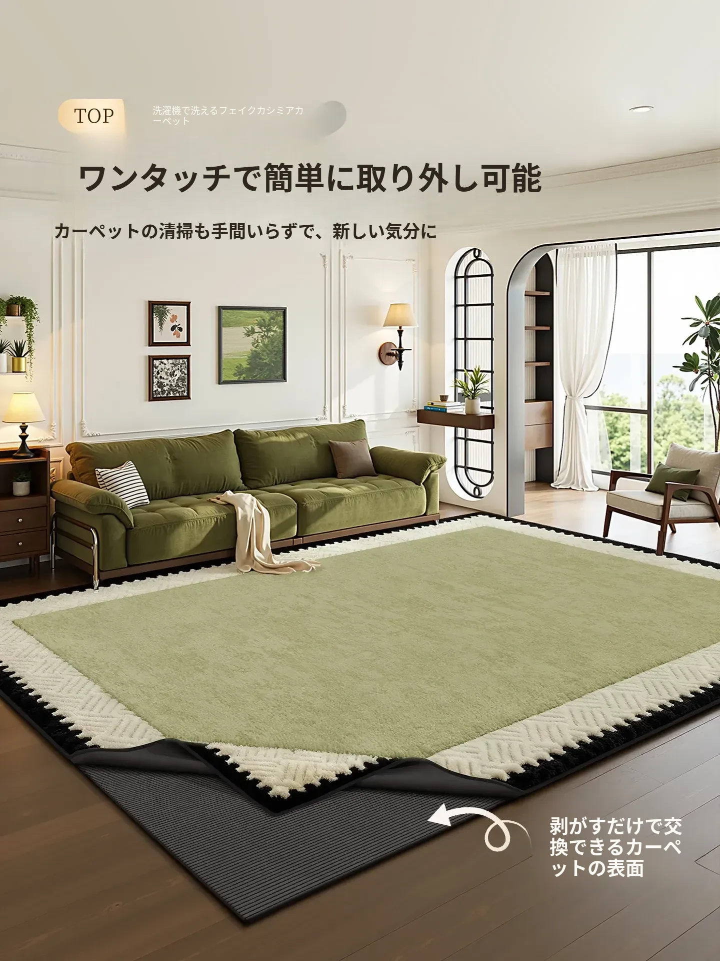 フランス風ヴィンテージデザインの二層式洗えるラグ - 高級感あふれるリビングにぴったり!滑り止め付きでお手入れ簡単、家庭用にも最適。