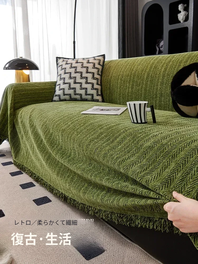 アメリカンレトロ・シェニールソファカバー|四季対応・高級感あふれる軽やかさ|滑り止め付き・全包み・万能タイプのブランケットカバー