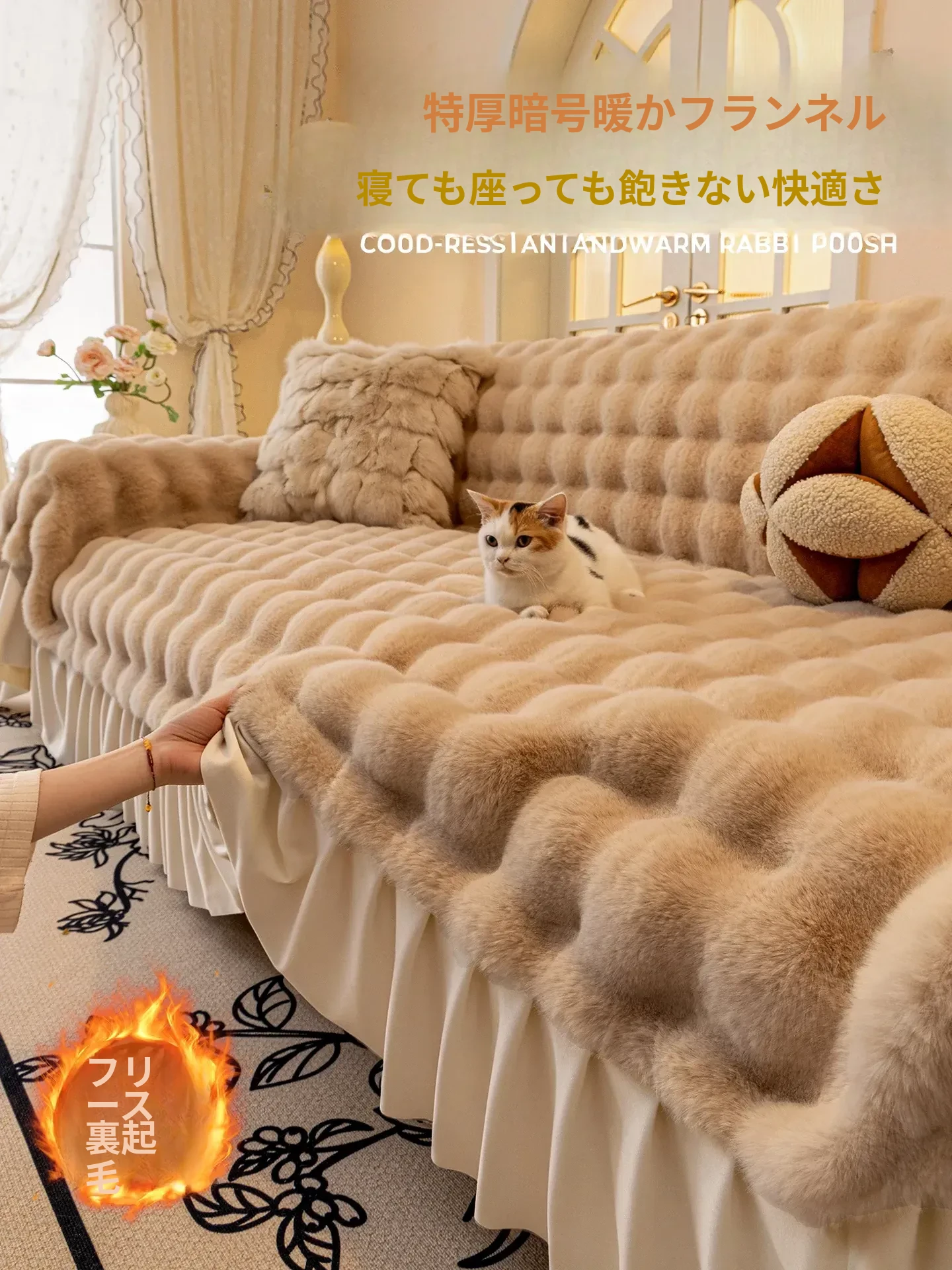 2024年新作!秋冬にぴったりのふわふわソファカバー、全包タイプで猫の爪から守る万能ソファシート!快適な座り心地を実現し、おしゃれなインテリアに!