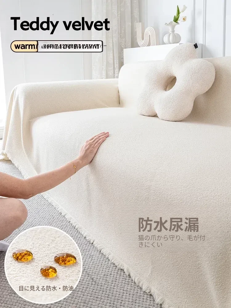 高級感あふれる防水テディファーソファカバー|猫のひっかき防止|四季折々に使える全カバーソファブランケット&クッションカバー