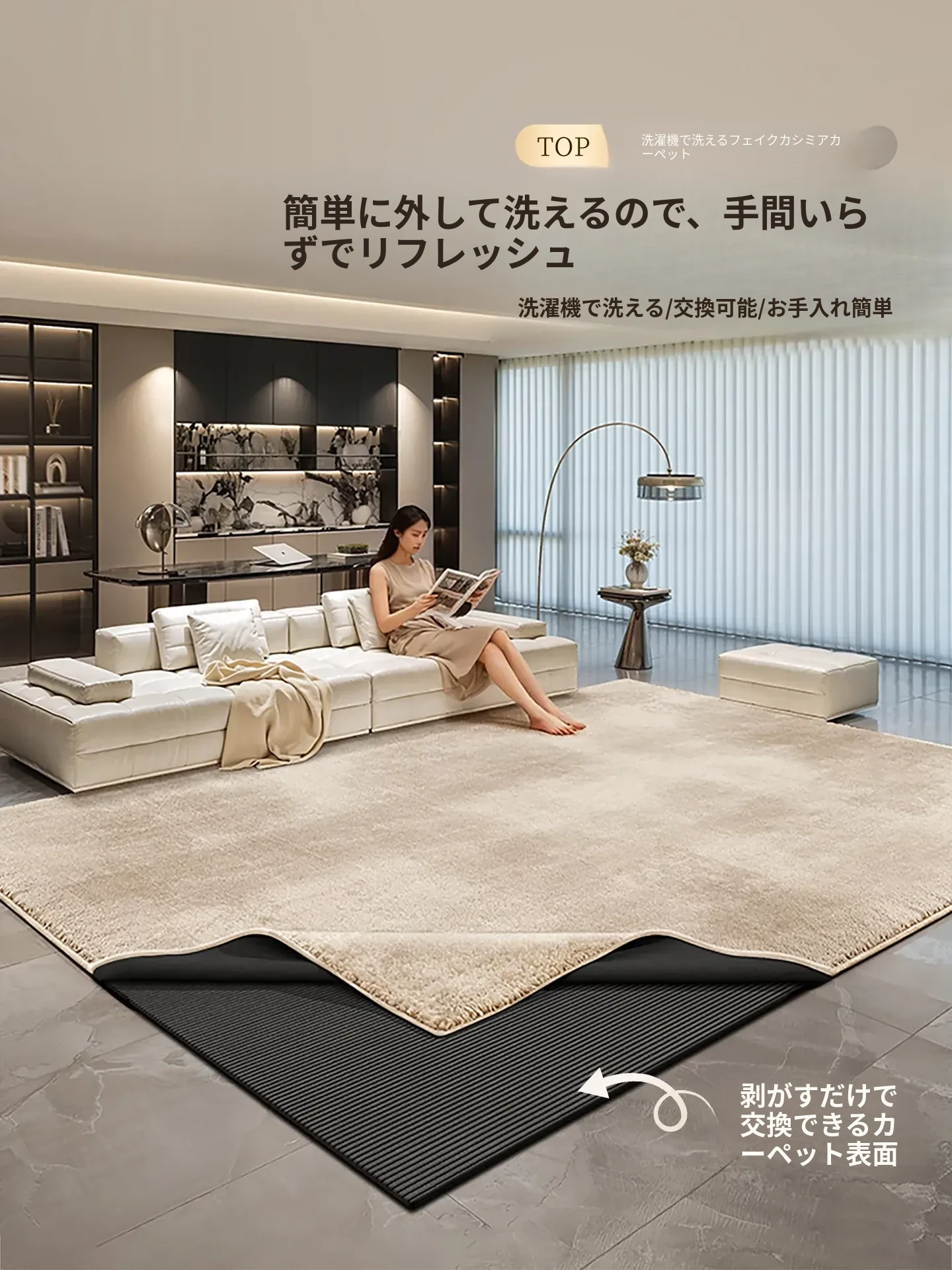 2025年新作!軽奢感あふれる高級感のある取り外し可能なカーペット。リビングや寝室に最適!滑り止め付きの二重構造で、洗濯機で簡単に洗えるので、お手入れもラクラクです!