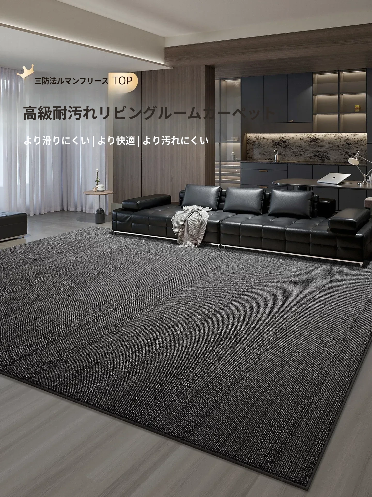 リビングルームにぴったりの高級感漂う軽やかなカーペット!お手入れ簡単&防水防汚設計で、ソファやテーブルの下にも最適。滑り止め機能付きで、寝室のベッドサイドにもおすすめ!