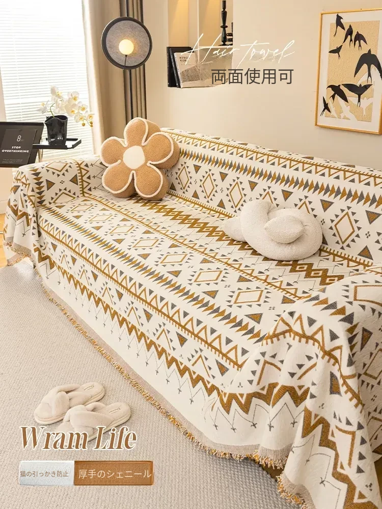 モダンシンプルソファカバー・シェニール素材使用・オールシーズン対応・ボヘミアンスタイル・全カバー・万能ソファカバーでお部屋をおしゃれに演出!