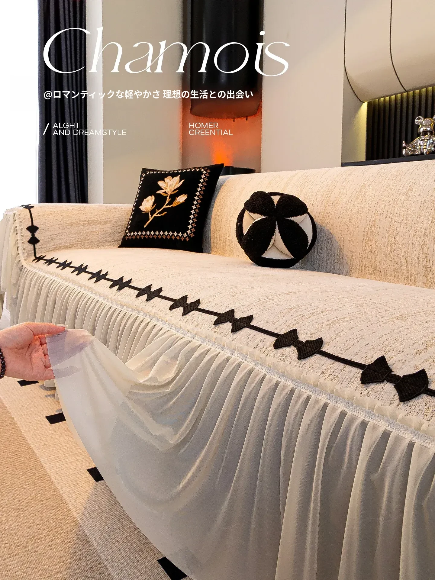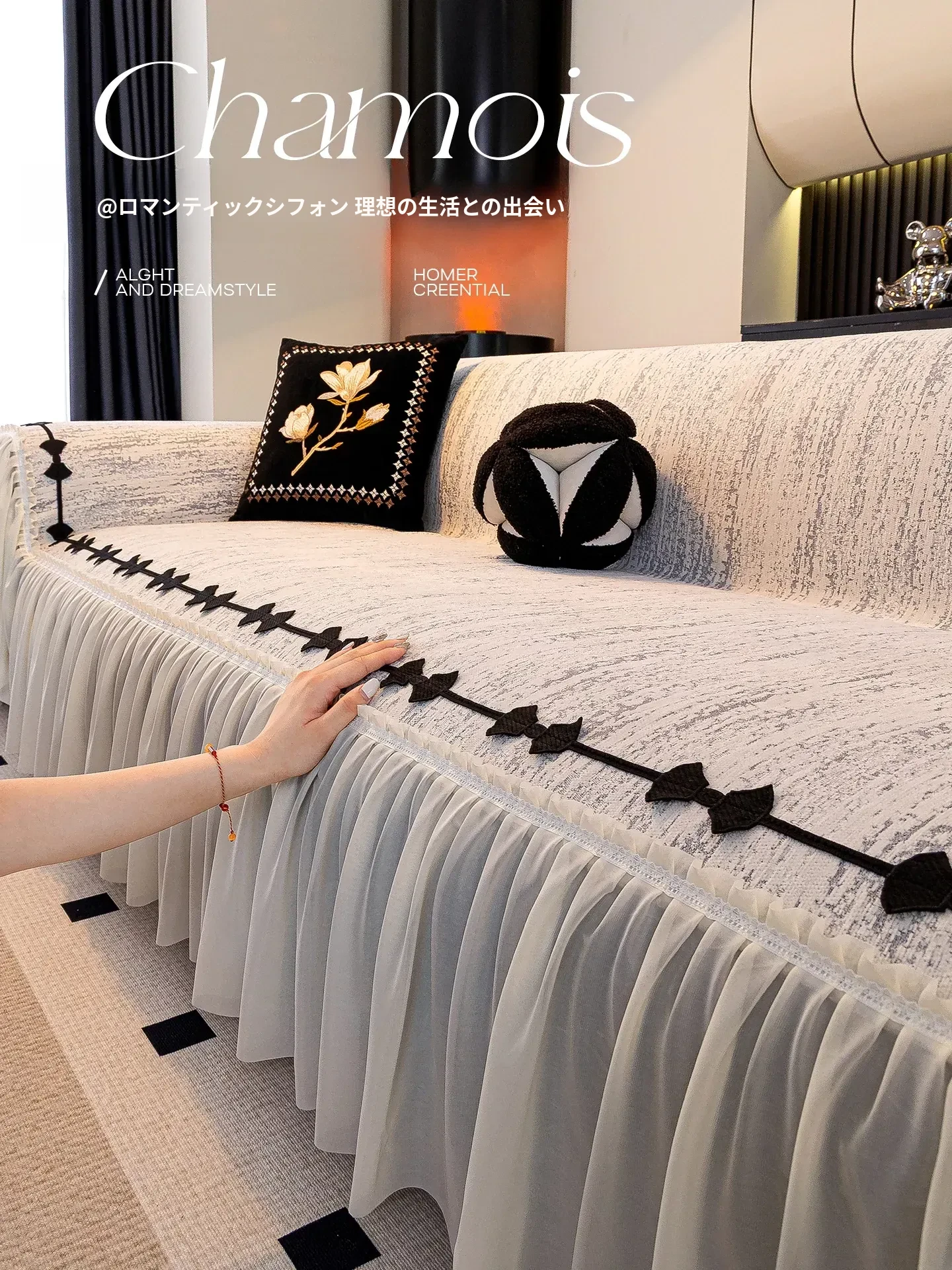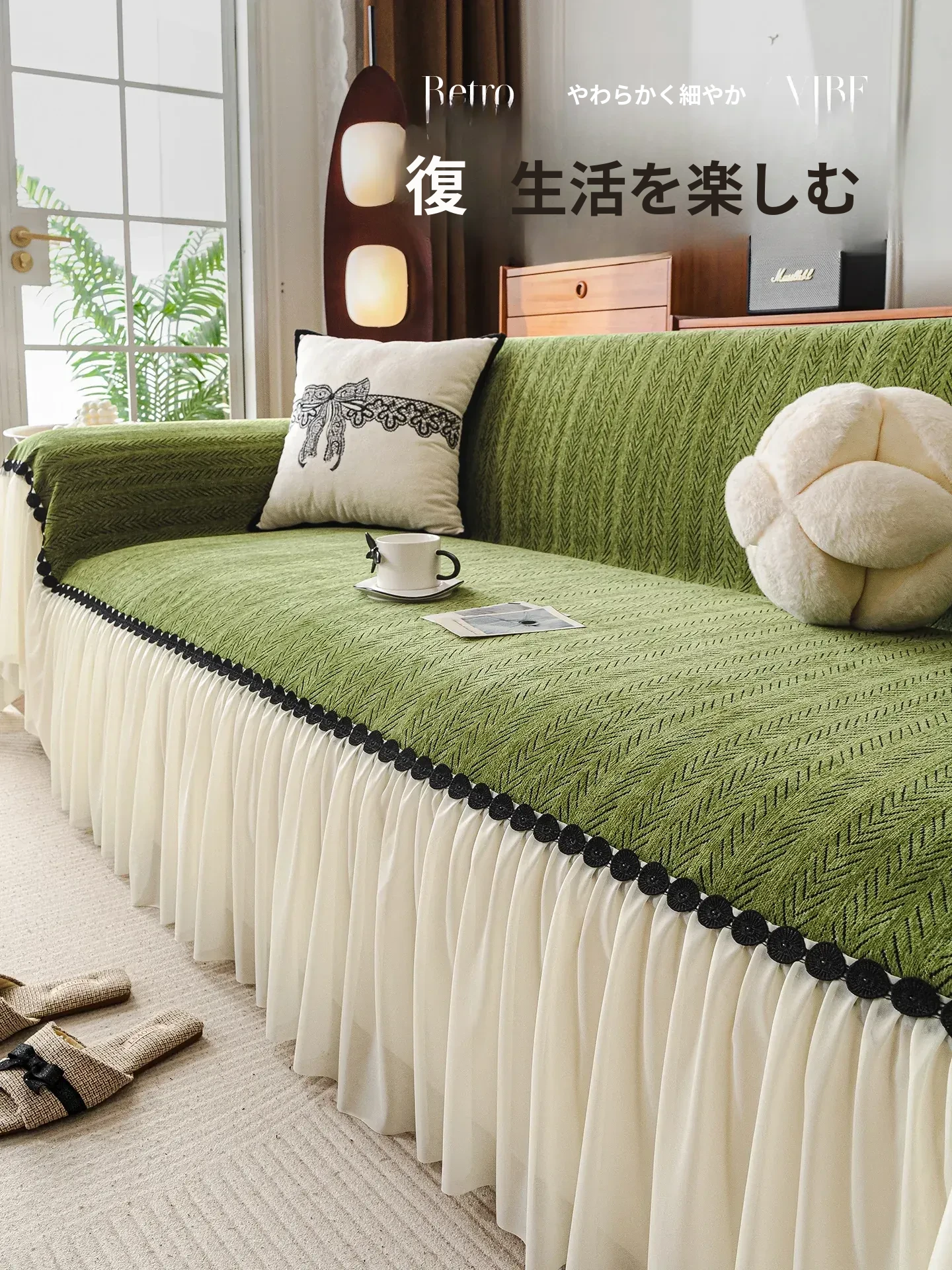 2025新作 フランス風 スカートエッジ シェニールソファカバー 四季対応 キャットクロー防止 完全カバータイプ おしゃれで実用的な全身カバー!