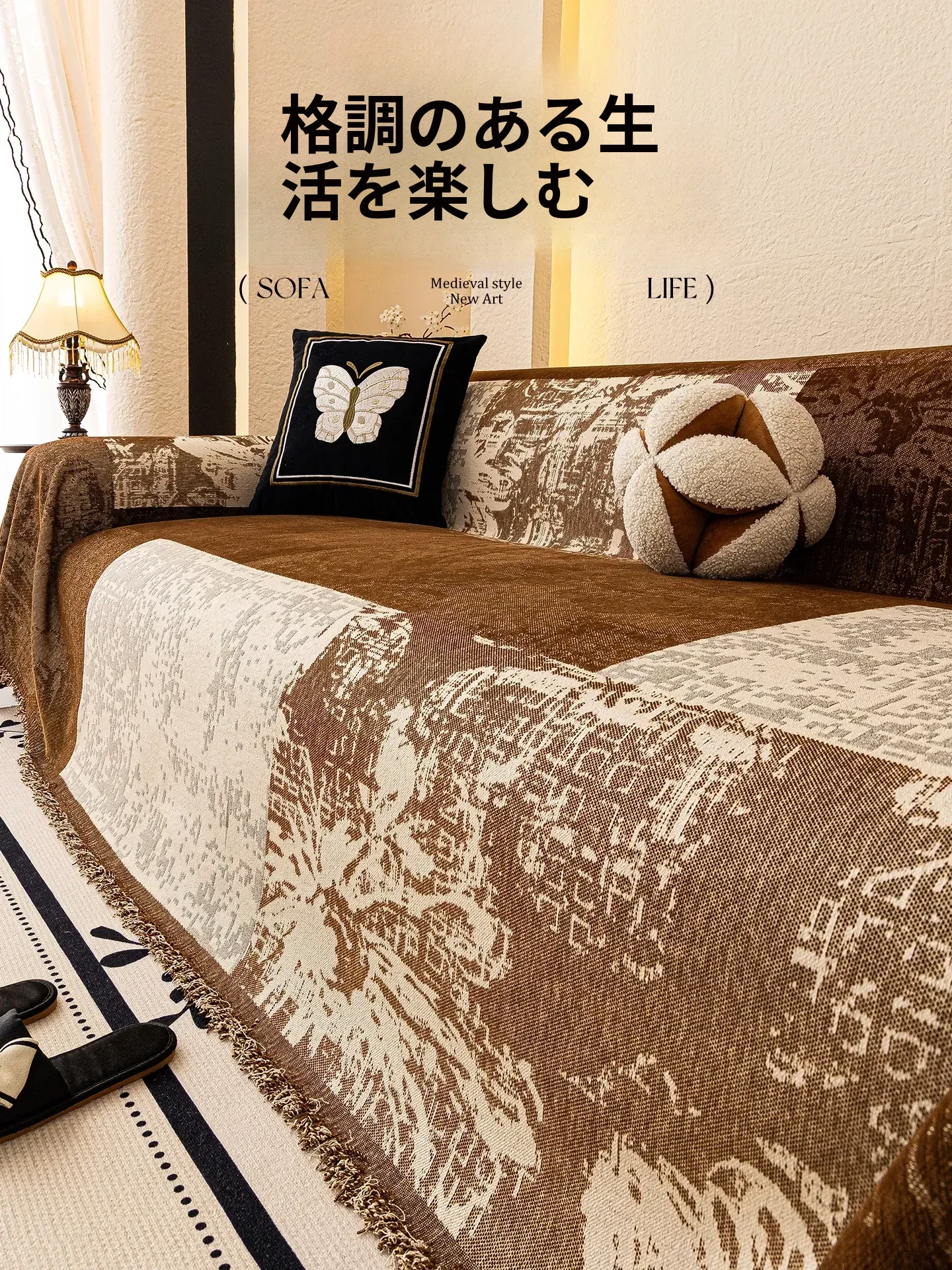 2025年新作!レトロ風ソファカバー 全面カバーで万能!四季にぴったりなクッションブランケットで、あなたのリビングをおしゃれに演出!