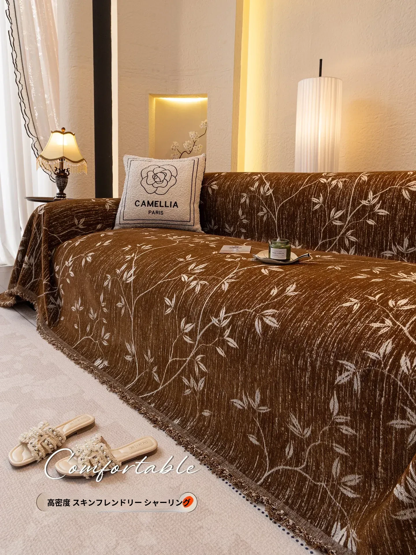 高級感漂うチェニールソファカバー - 四季折々に最適!滑り止め付きの全カバーソファカバーとクッションブランケット。お部屋をおしゃれに演出し、快適なひとときをお届けします!