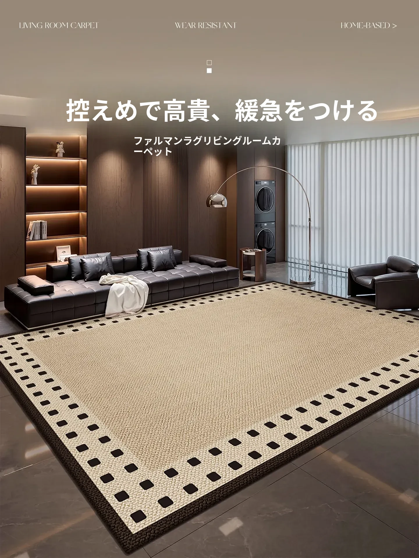 2025年新作!モダンでシンプルな防水・防汚カーペット、リビングのソファやテーブルに最適!滑り止め付きで、寝室でも安心。お手入れ簡単、拭くだけで清潔に保てる便利なマット!