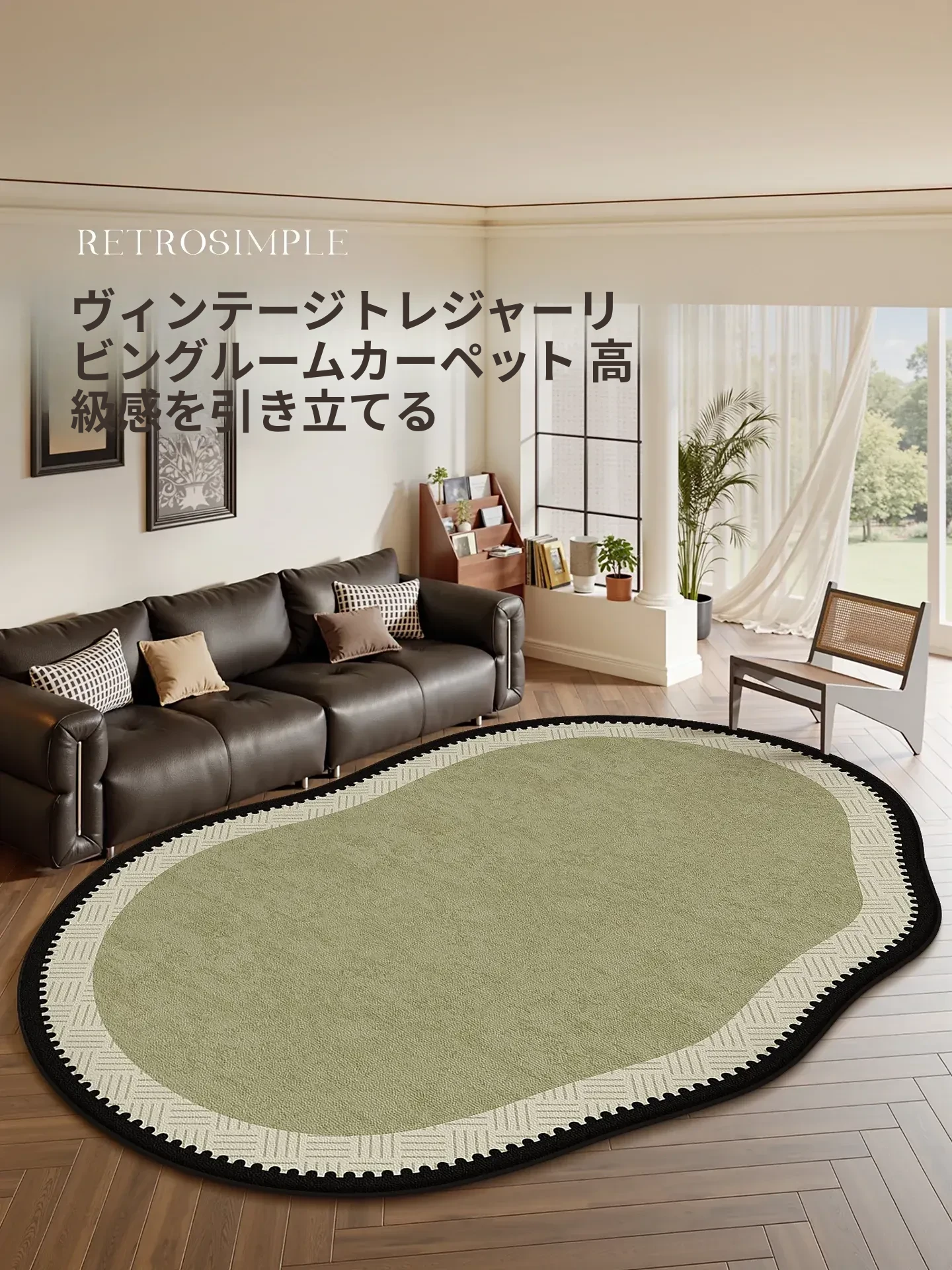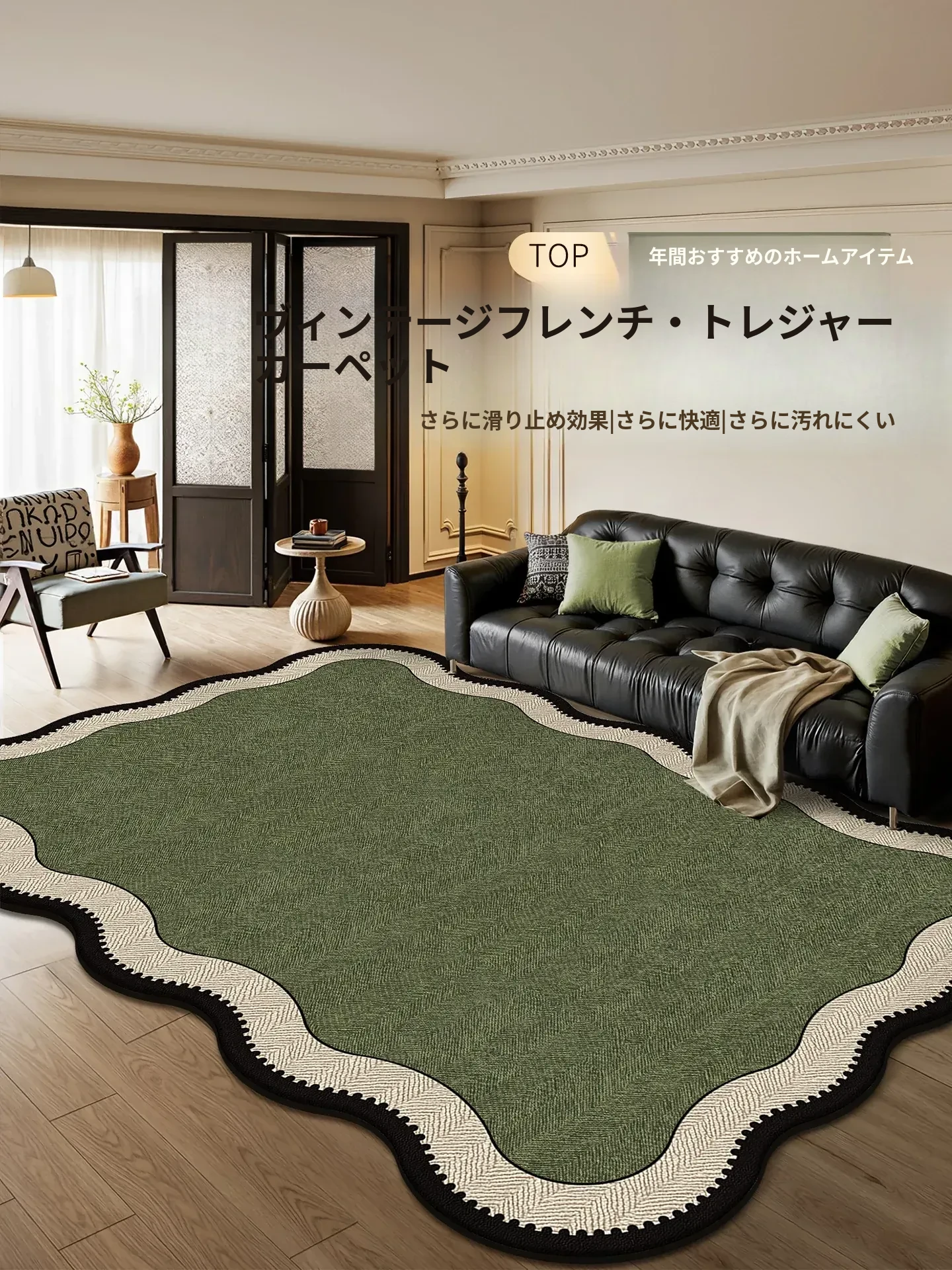 2025年新作!フランス風ヴィンテージリビングルームカーペット - おしゃれなグリーンの寝室用ラグ。洗濯不要で簡単お手入れ!高級感あふれる滑り止めデザインで、ソファにぴったりの一品です!