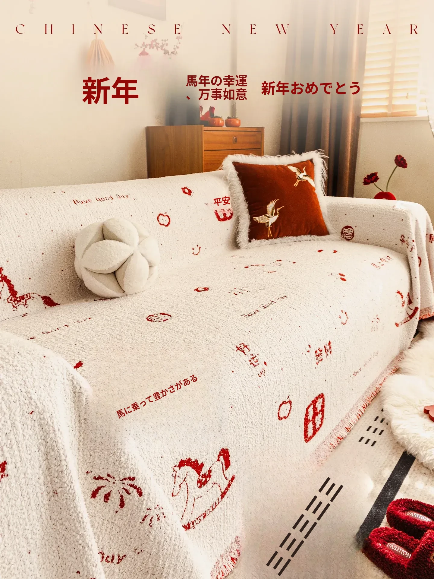 新年を彩る赤いお祝いのソファカバー - 2025年新作、四季に対応!猫の爪から守る防護機能付き!おしゃれで実用的なソファカバーで、家族の団らんをさらに楽しく!