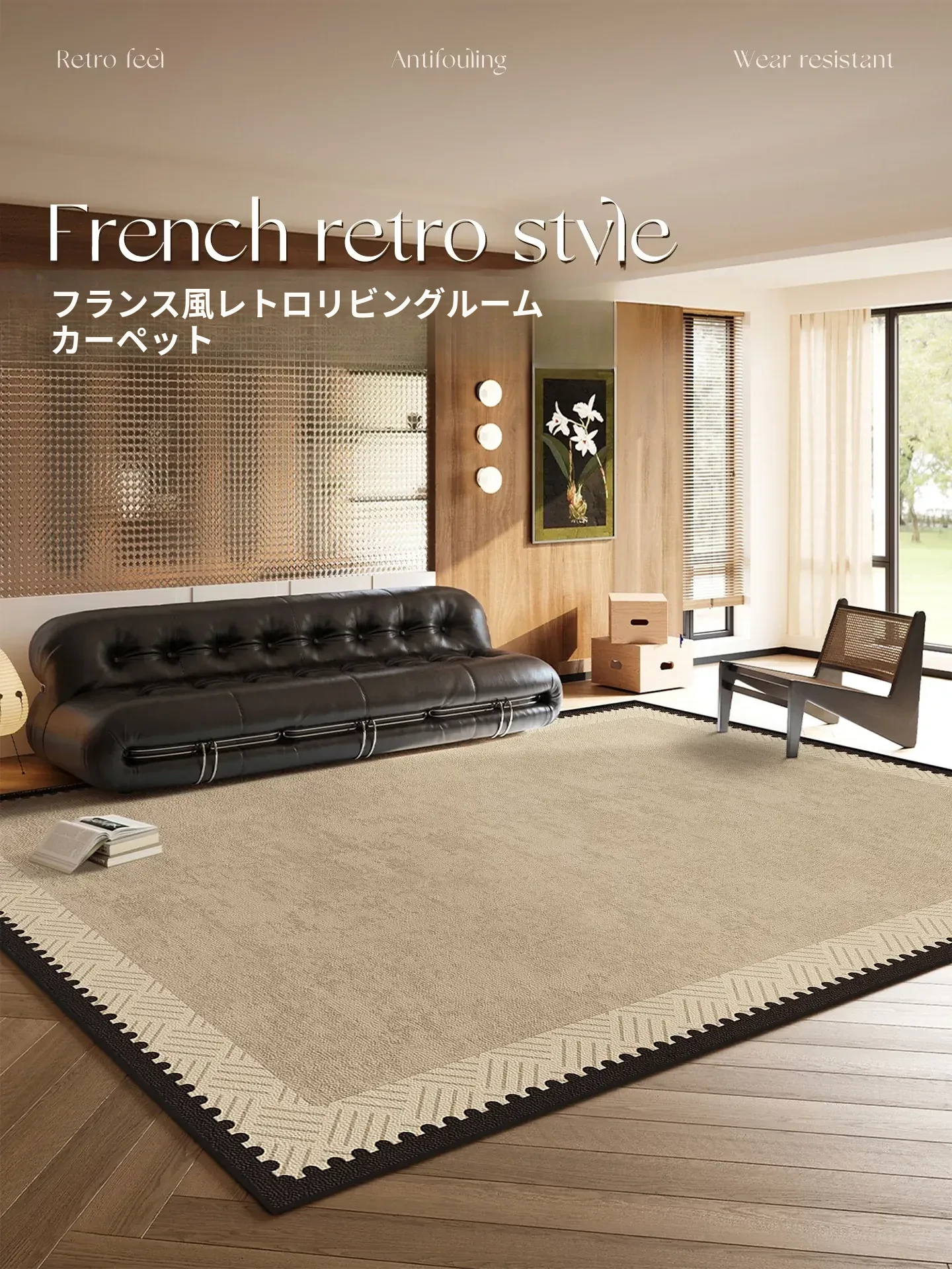 高級感あふれるフレンチヴィンテージリビングカーペット|全敷きタイプで滑り止め付き|猫の爪にも負けない耐久性|水分吸収&お手入れ簡単な洗濯不要マット!おしゃれな空間を演出します。