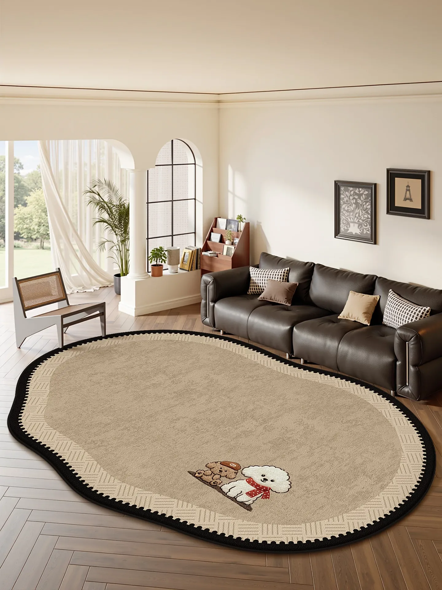 フランス風カートゥーンデザインのリビングルームラグ、ソファやベッドルームにぴったり!高級感溢れる防水・汚れに強いお手入れ不要の滑り止めマット。おしゃれで実用的なインテリアアイテムをお見逃しなく!