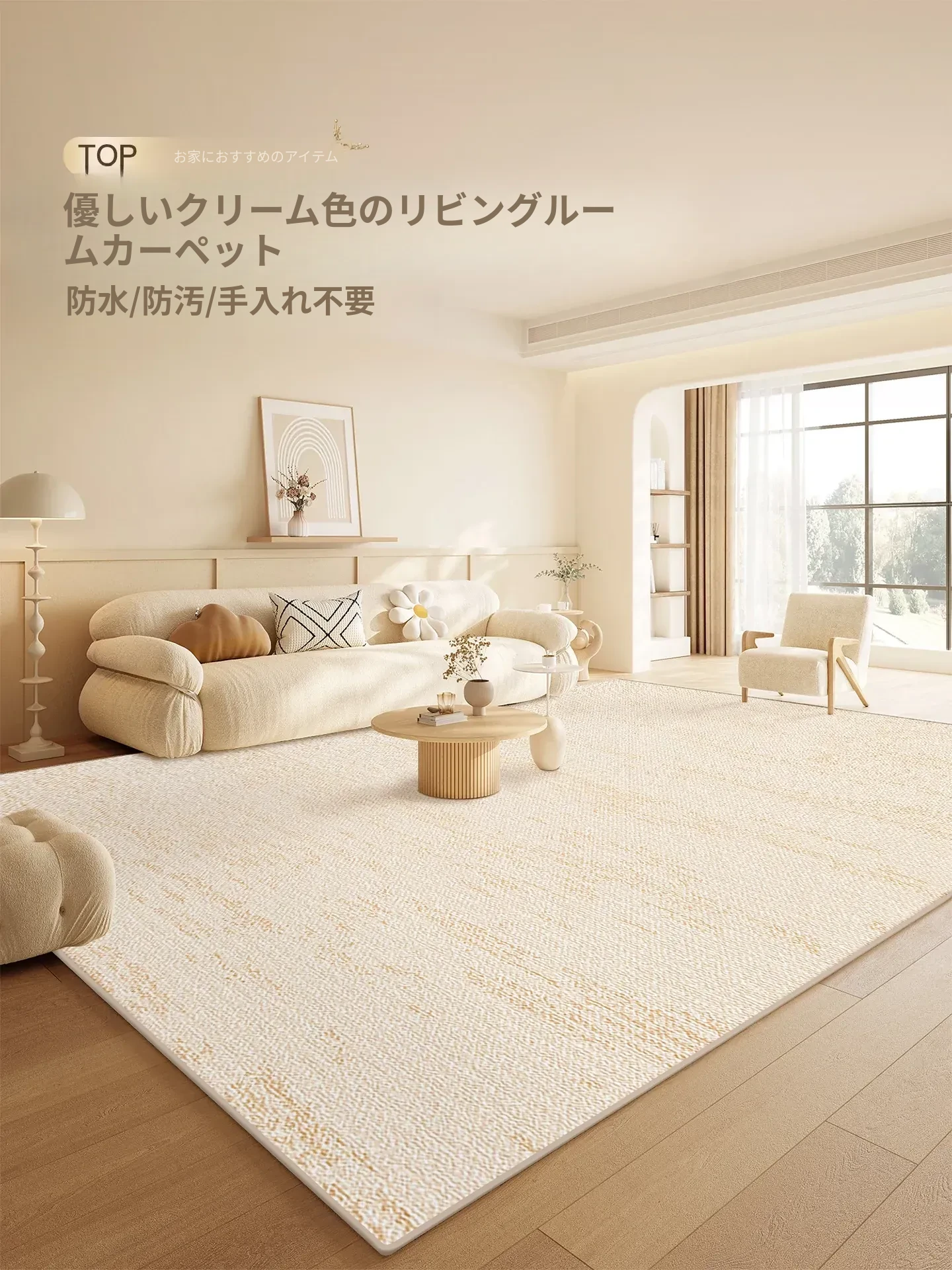 防滑防水のクリーミーカラーリビングラグ - お手入れ簡単!モダンでシンプル、ベッドサイドやソファ、テーブルにもぴったり。どんなインテリアにもマッチする、おしゃれで機能的なアイテムです!