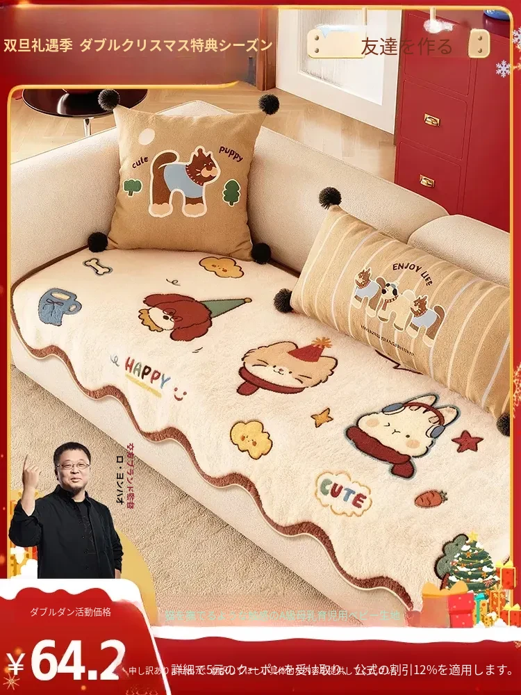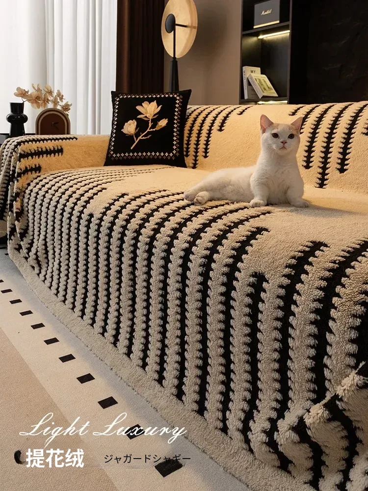 ドーパミン全包プラッシュソファカバー【2025冬新作】猫の爪を防ぐ!ソファを完全に覆うふんわりブランケット。あなたのリビングをおしゃれに保護!