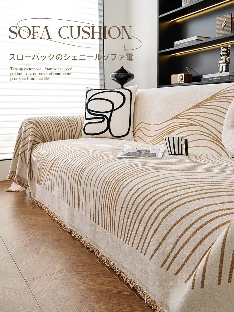 高級感漂うチェニールソファカバー - 四季折々に最適!滑り止め付きの全カバーソファカバーとクッションブランケット。お部屋をおしゃれに演出し、快適なひとときをお届けします!