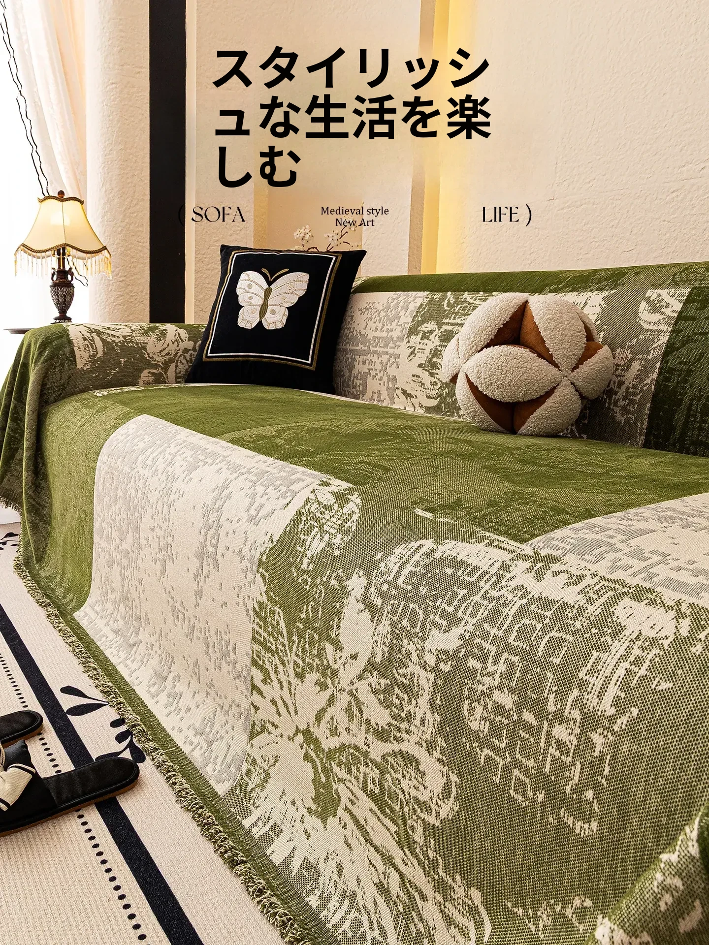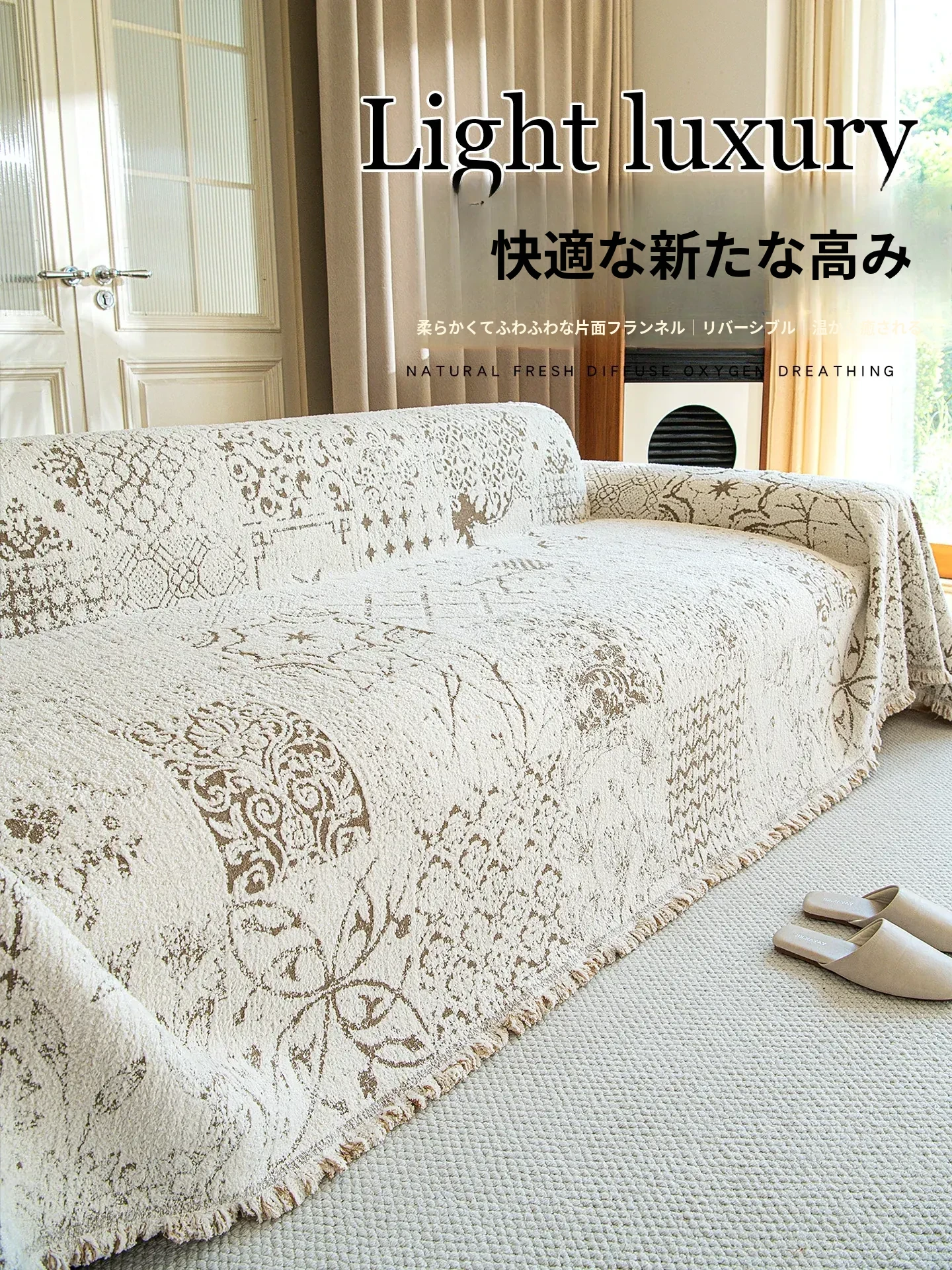 霏淘クリーム風四季対応ソファカバー2025年新作!滑り止め&猫の爪防止機能付き、快適な座り心地のソファマット・ブランケット!お部屋をおしゃれに演出する必需品!