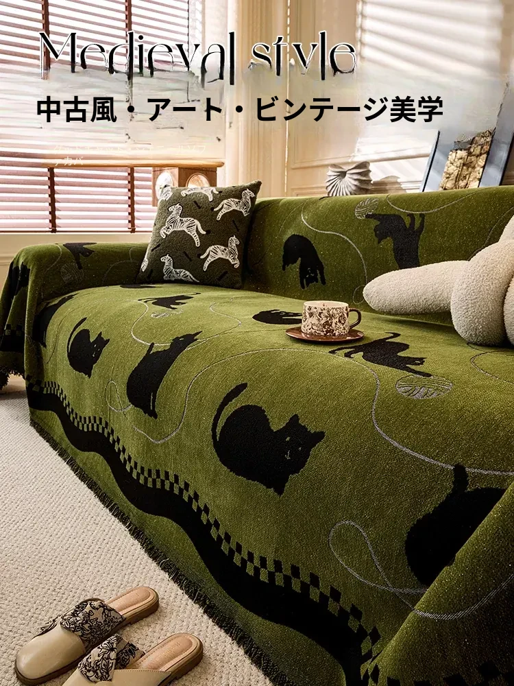 全カバー・カートゥーンデザインのシェニールソファマットカバー|2025年新作・四季対応・猫の爪から守るソファカバー【おしゃれ&実用的】