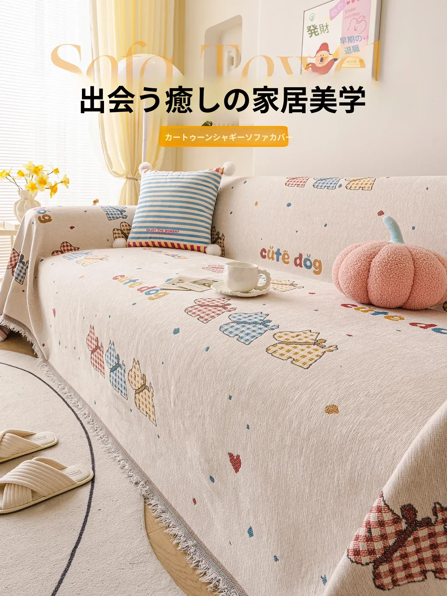 2025年新作!カートゥーンデザインの全包型ソファカバー - 猫の爪も防ぐ滑り止め機能付き、四季通用で快適なクッションとブランケットのセット。お部屋を可愛く彩る、あなたのソファにぴったり!